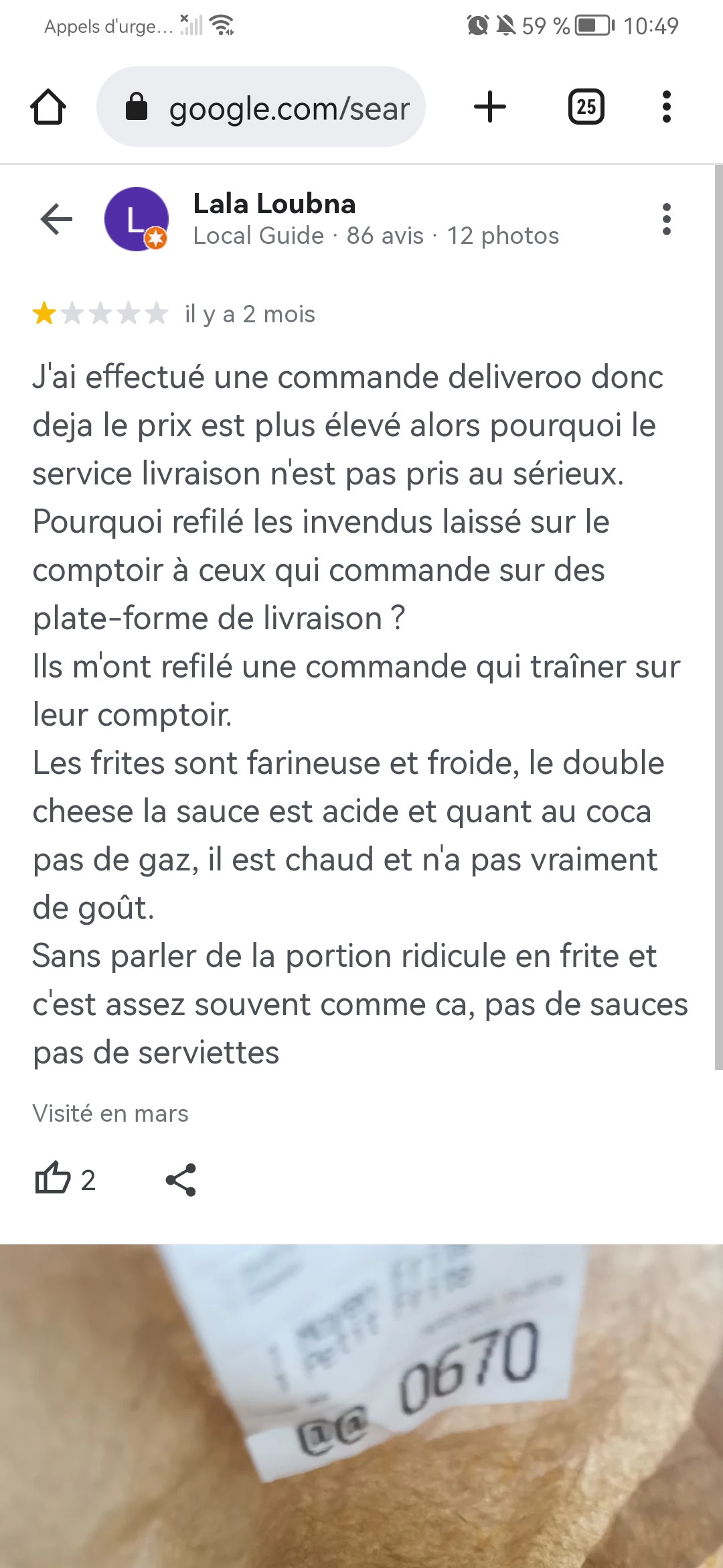 J’étais en train de commander sur Uber au Mc Do de Franconville quand je reçois un message disant qu’il n’y a plus de livraison, juste un peu avant 20h !!!Je commande donc au Mc Do d’Ermont qui est encore plus près à 950 m. Première et dernière fois 😡 Longue attente de 45 mn, commande livrée froide, pas de serviettes, pas de sauces, et le comble je trouve un simple cheese burger alors que j’ai commandé un DOUBLE cheese bacon … je cherche encore le bacon !!! A fuir absolument