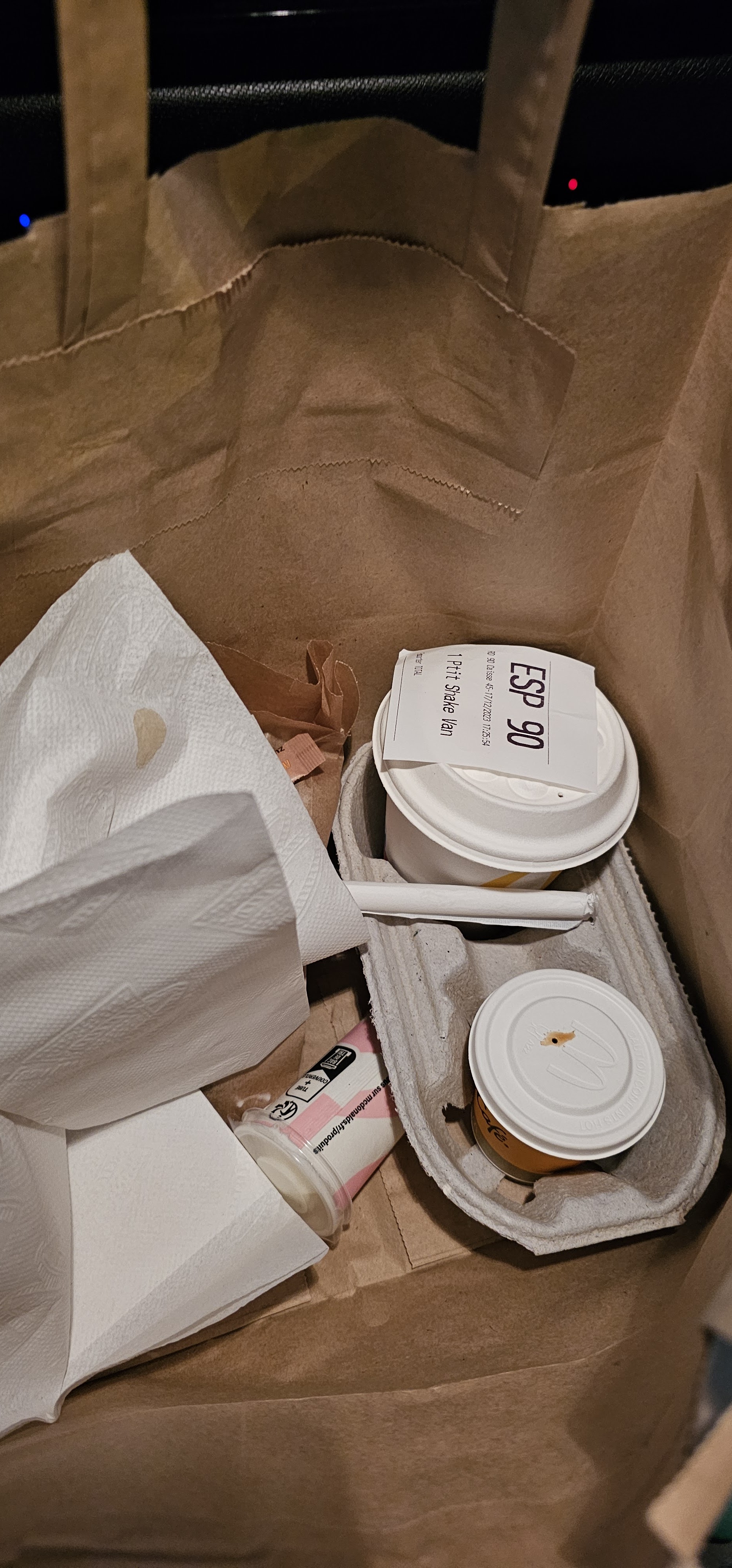 Voilà ce qu’il manquait dans mon sac (commande initiale : 2 menus golden, rien de bien méchant) : 1- les nuggets 2- la sauce qui va avec (bbq) 3- les sauces classiques (ketchup) 4- les serviettes Bonus : les boissons étaient mal fermées donc tout a coulé partout Fuyez !