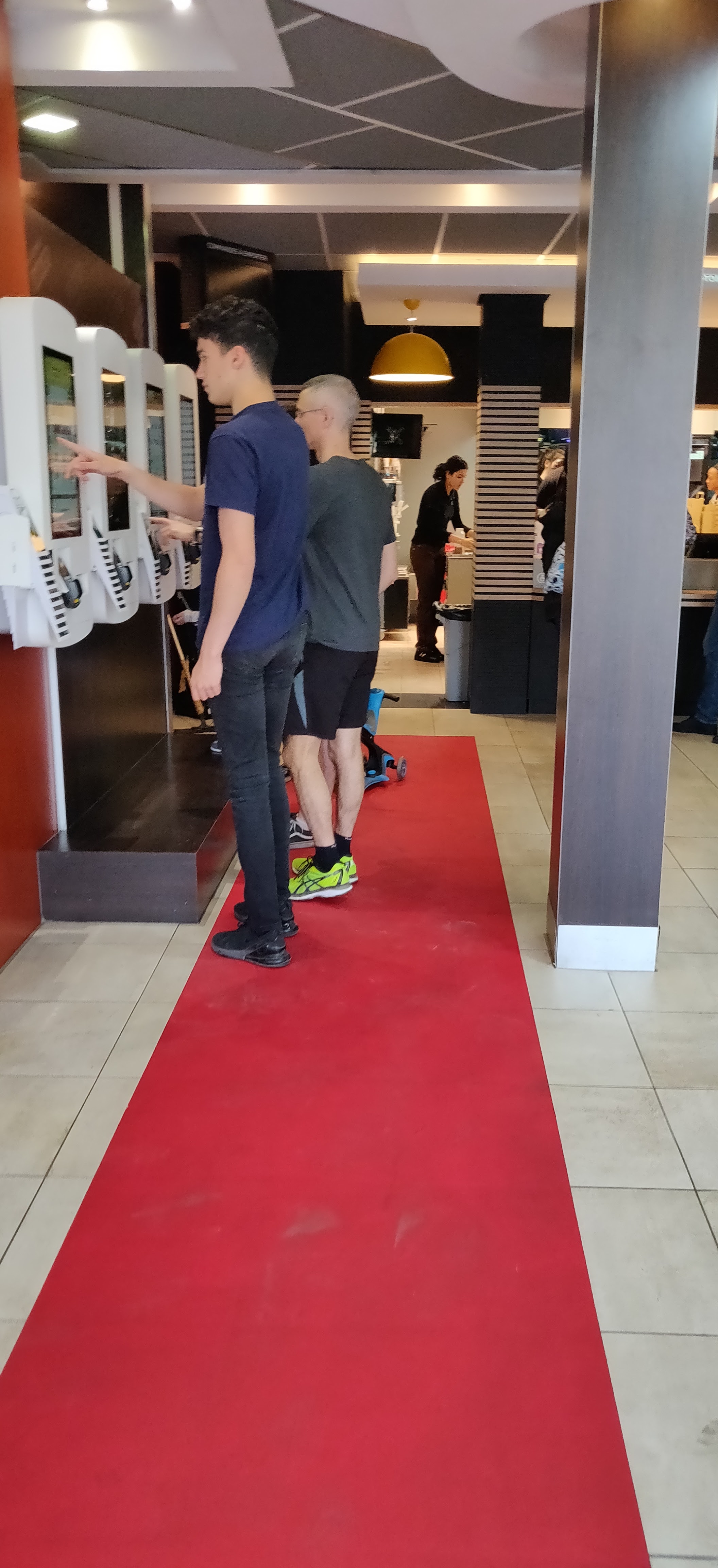 Sur 5 borne de commande 2 en etat de marche. Apres 20 minutes d'attente et ma reclamation je suis enfin servie en salle. Pas de serviette et erreur sur le burger commander. A eviter!!!