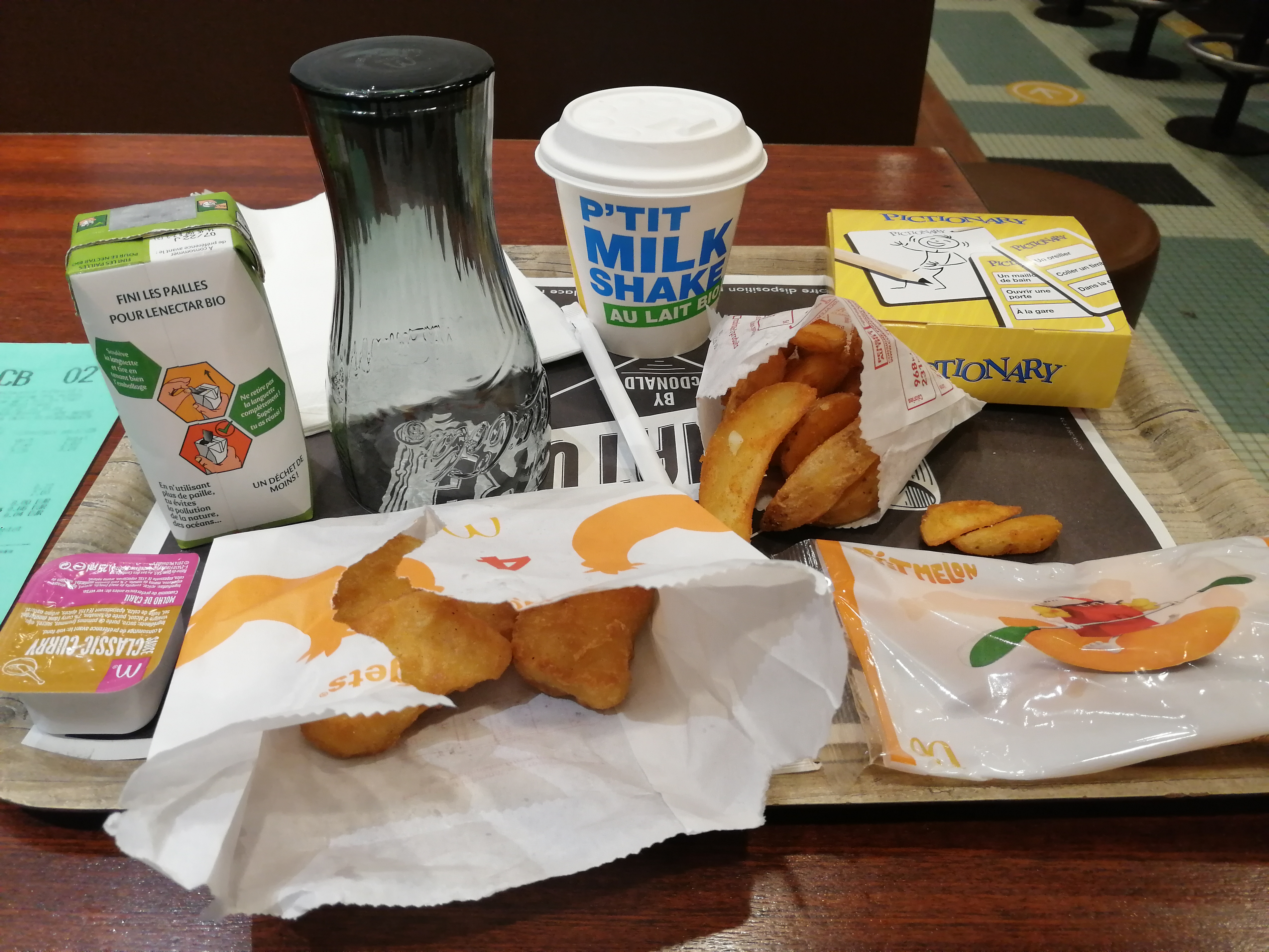 Plus rien de dispo, on me sert un plateau sans boisson sans prévenir qu’ils n’avaient plus d’ice tea, plus de croque mcdo ni happy meal, pas d’organisation etc… désolé mais catastrophique