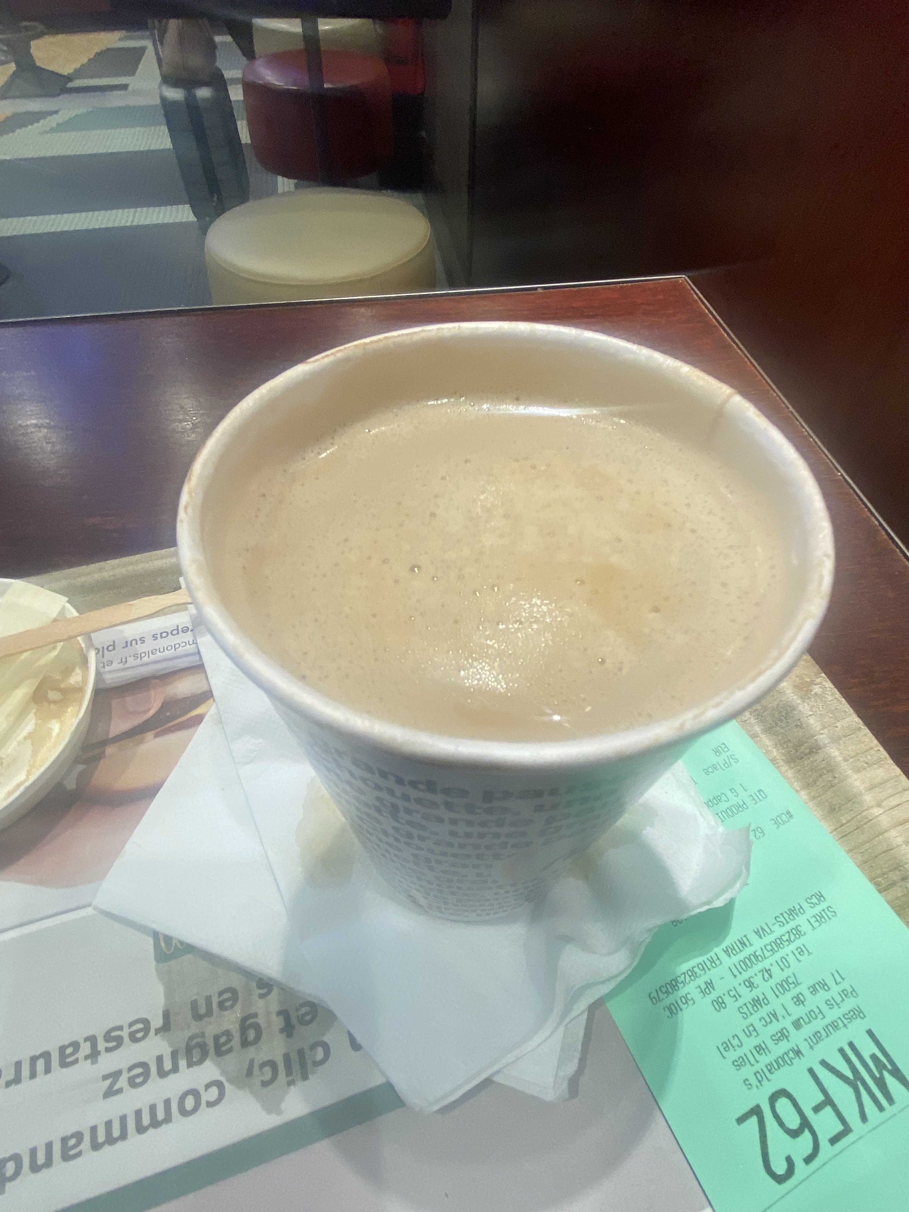 Je ne sais pas si c’est un Cappuccino ou juste de l’eau chaude et tout ça pour 3,50 €