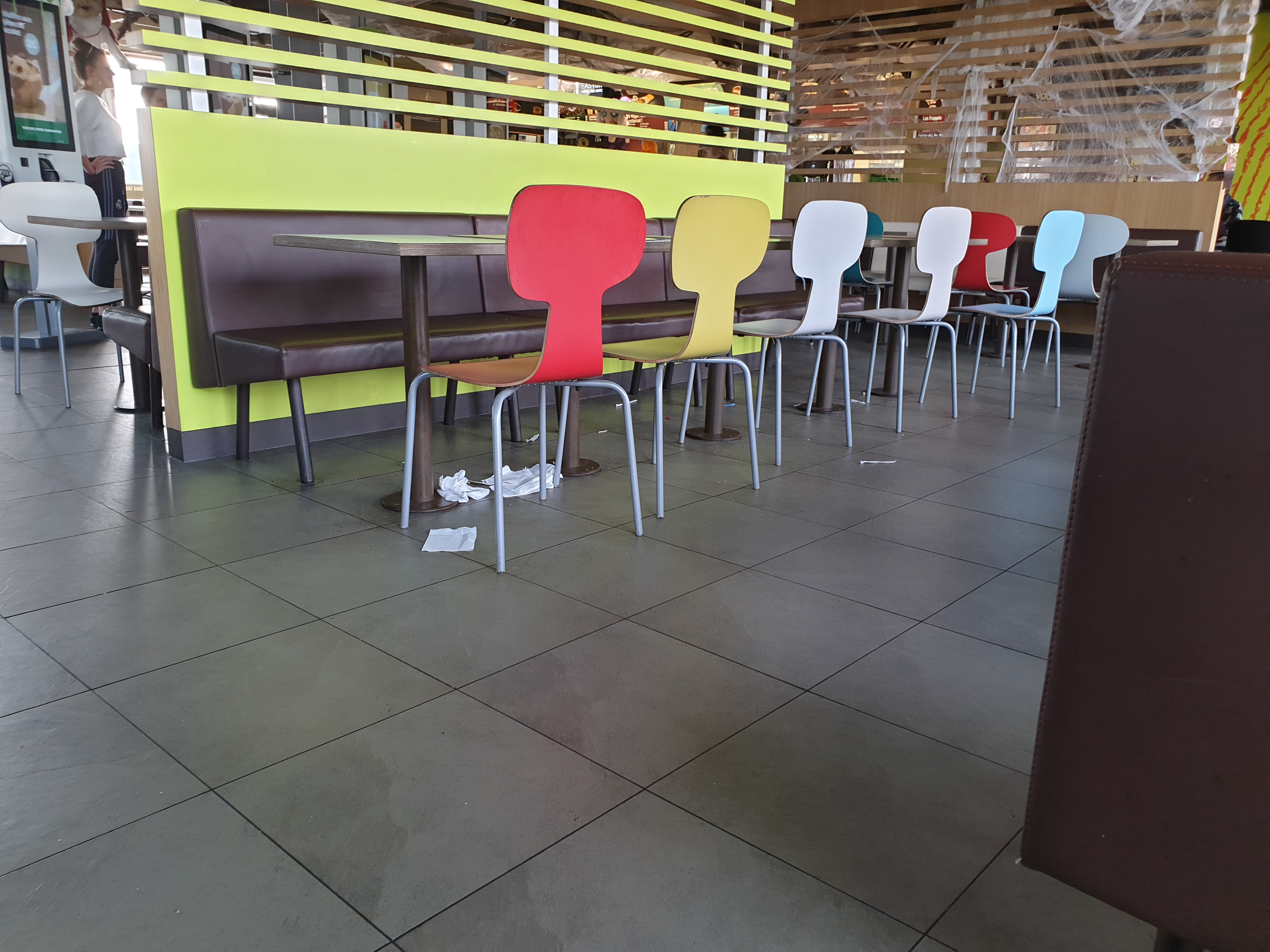 16h30. Le MacDo est pratiquement désert et il faut tourner avec son plat pour trouver une table presque propre 🤔 Pour le reste, c'est du Macdonald.