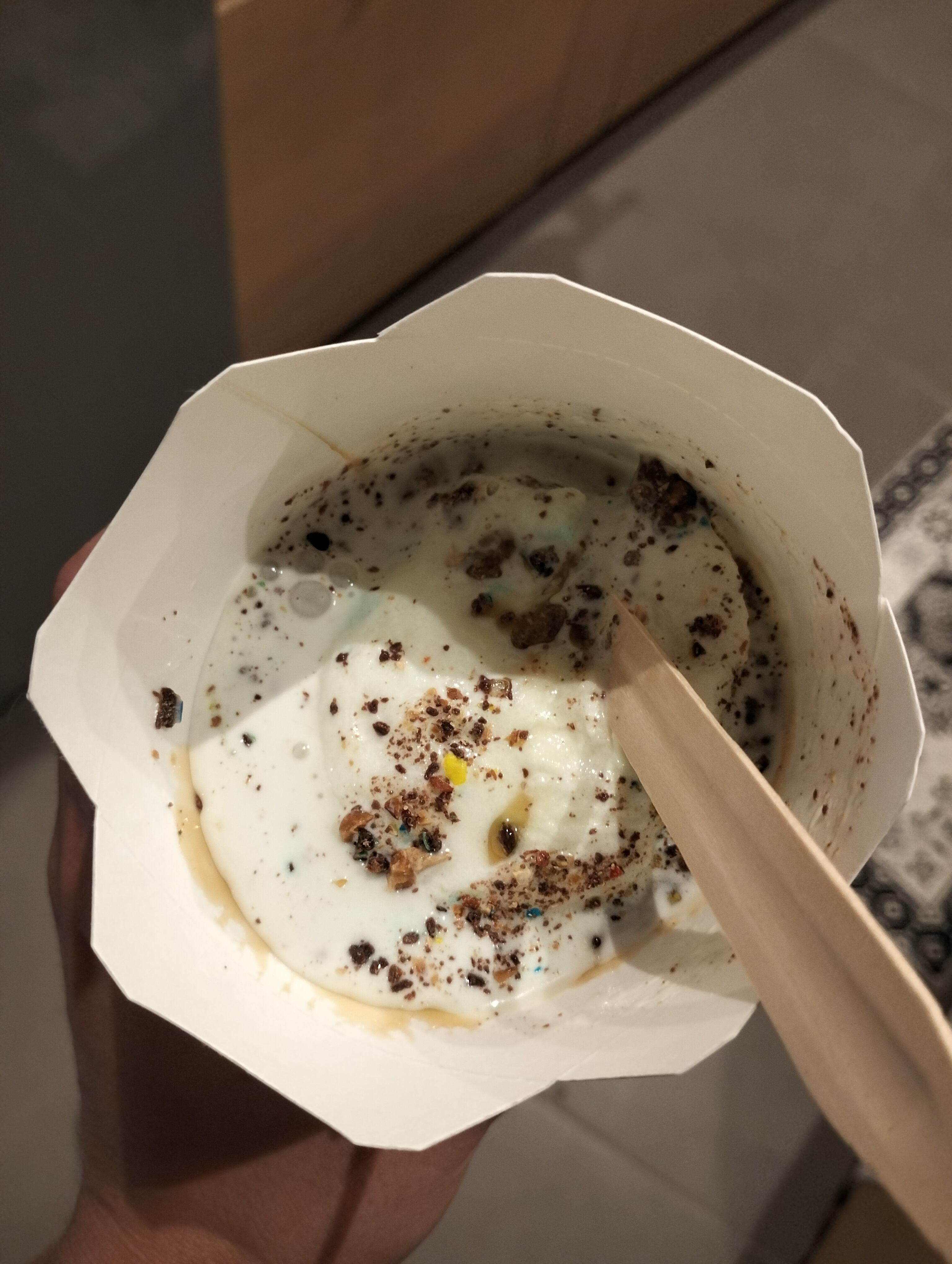 Payer 4,60 un mac flury plus 30cts de supplément de topping pour avoir 4 bouts de MMS qui se battent en duel je trouve ça inadmissible, en plus de ça la glace est servie quasiment fondue...