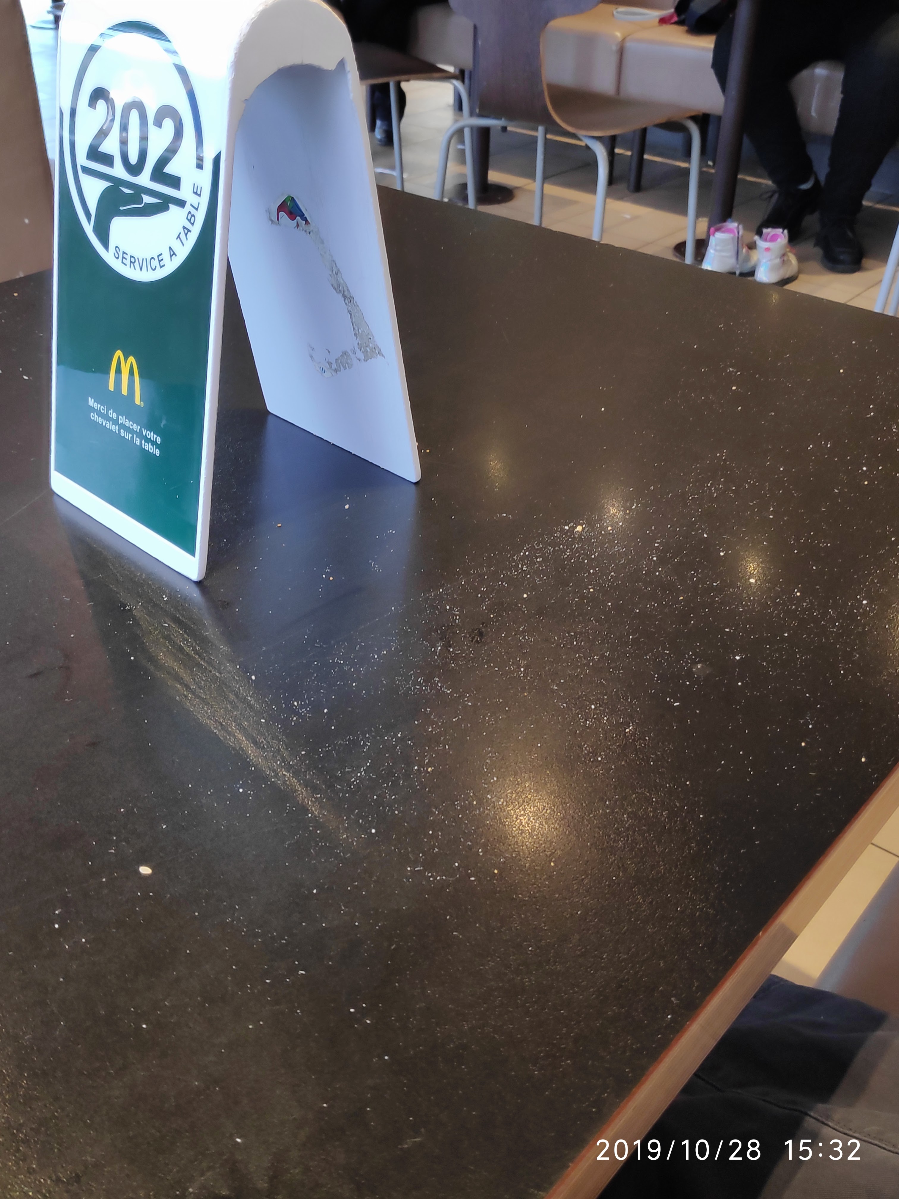 Table non nettoyée, personnel qui hurle le numéro de la commande, vous sert sans sourire. Frites froides, vous les rapporter, on vous les reprend (sympa), on vous en redonne aussi froides... Vous les re-ramenez, on vous assure qu'on vous les apportera à table....15 minutes d'attente. A nouveau obligé de nous déplacer, la personne vous reconnaît et fait semblant de ne pas vous voir ! Vous poirotez 10 minutes jusqu'à ce qu'on veuille s'occuper de vous. Inadmissible !...