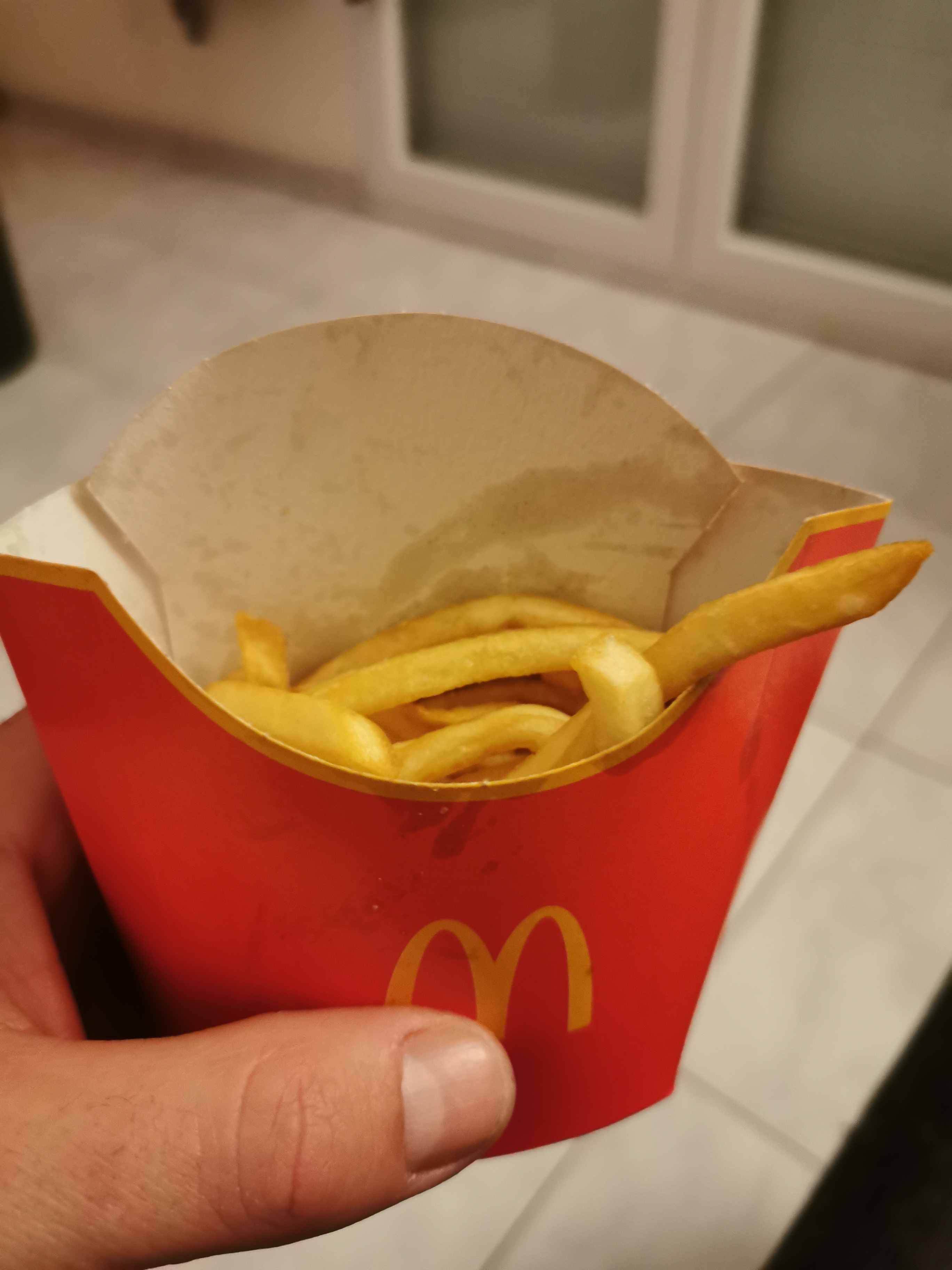 C’est de pire en pire, les prix augmentent et les portions et matières premières diminuent. Pochon de frites à moitié vide, pas de serviette, pas de sauce dans le sac… bref si mon fils n’aimait pas Mc do , c’est sûr j’y remettrai plus les pieds.