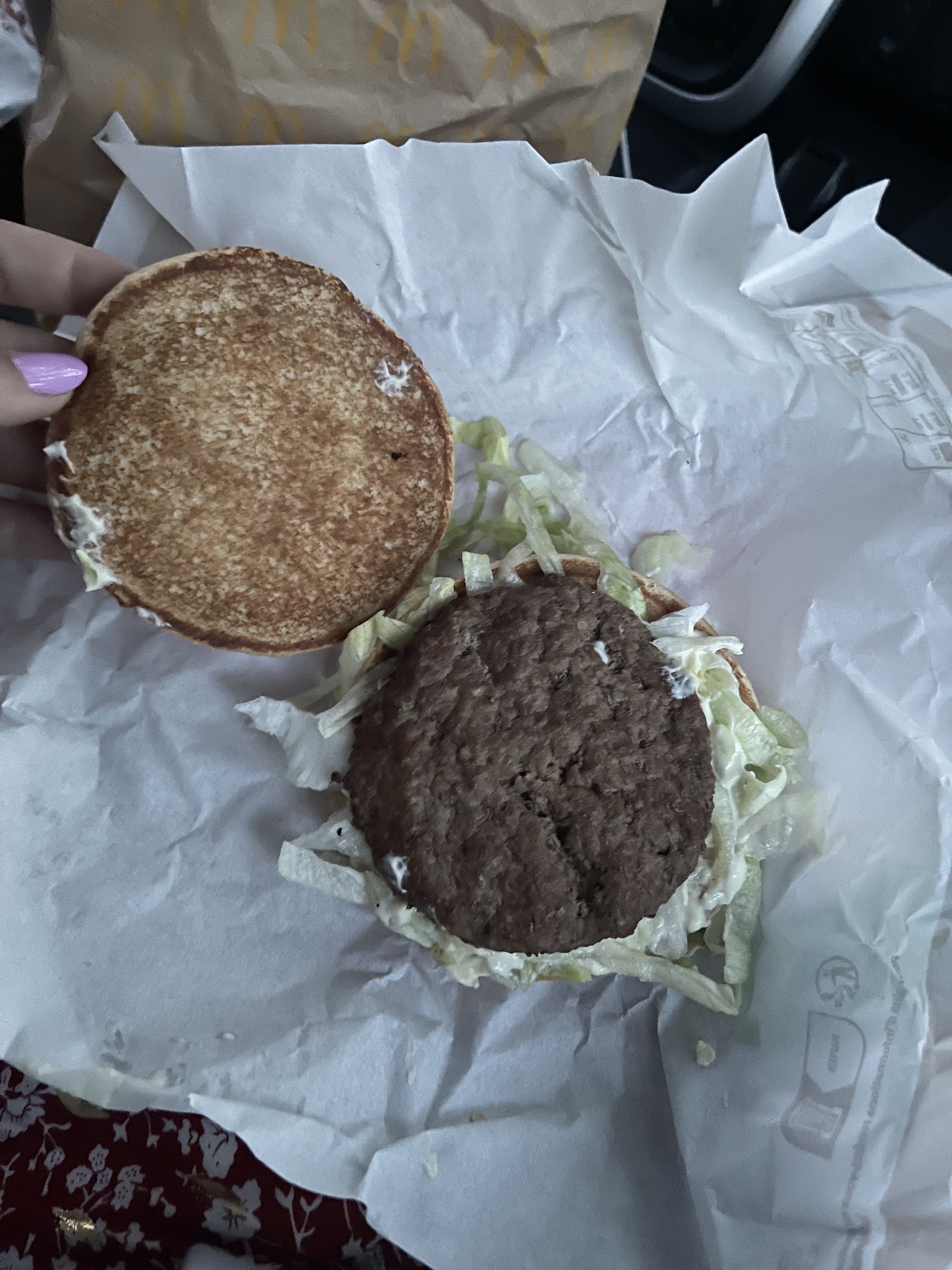 Alors la c’est la meilleure ! Je demande un menu mc CHICKEN au drive et quand j’ouvre mon sandwich me voilà avec le pain de la salade et UN STEAK de bœuf ! N’importe ça devient de pire en pire ce mc do