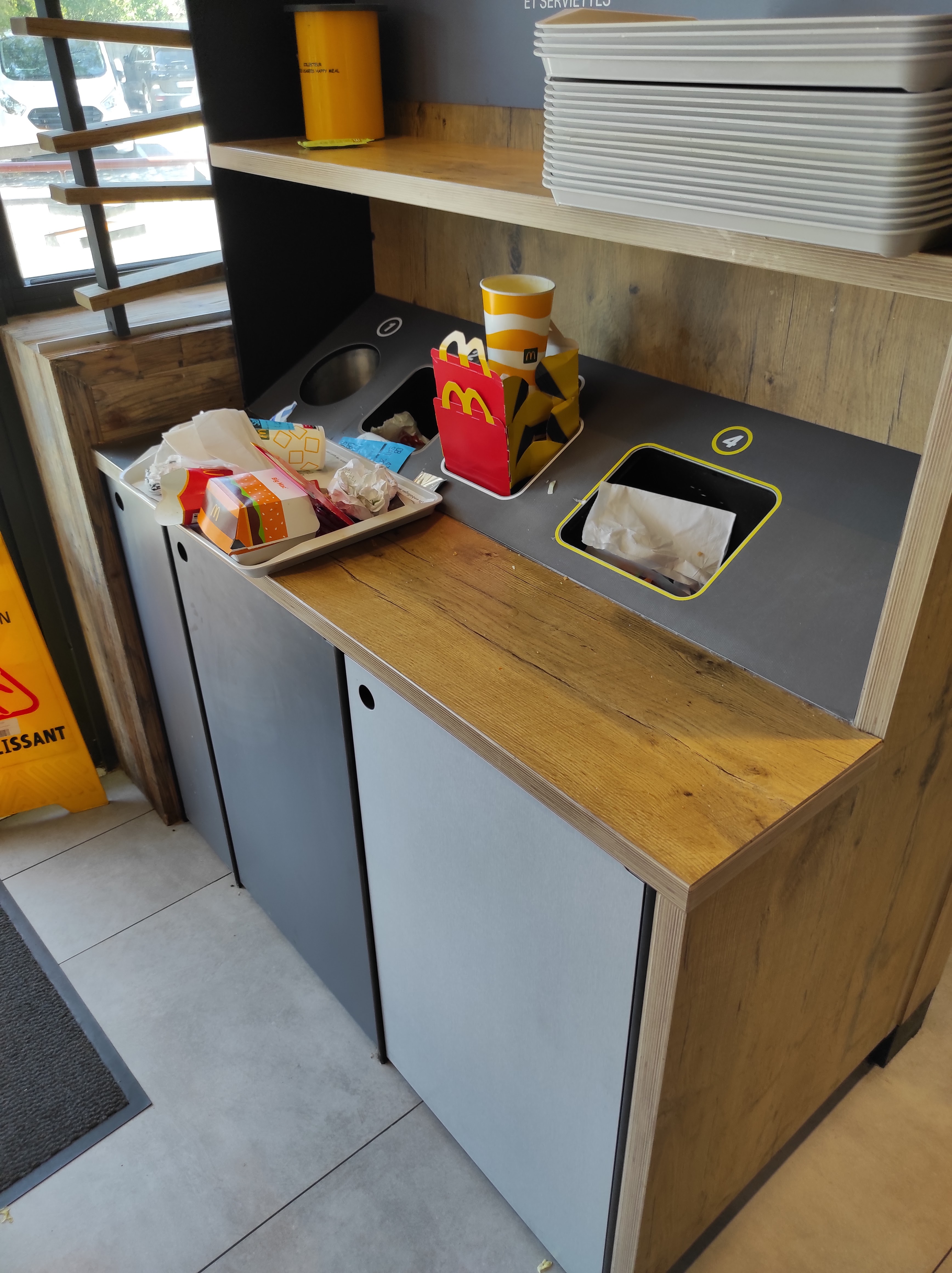 Très dessus de ma visite a ce mac do . Ça a bien changer . D ordinaire très bien , la c était pas très propre . Les poubelles débordent et les tables sont collantes .espérons que c est juste un instant Bad et que ça va changer .je reviendrais pour voir