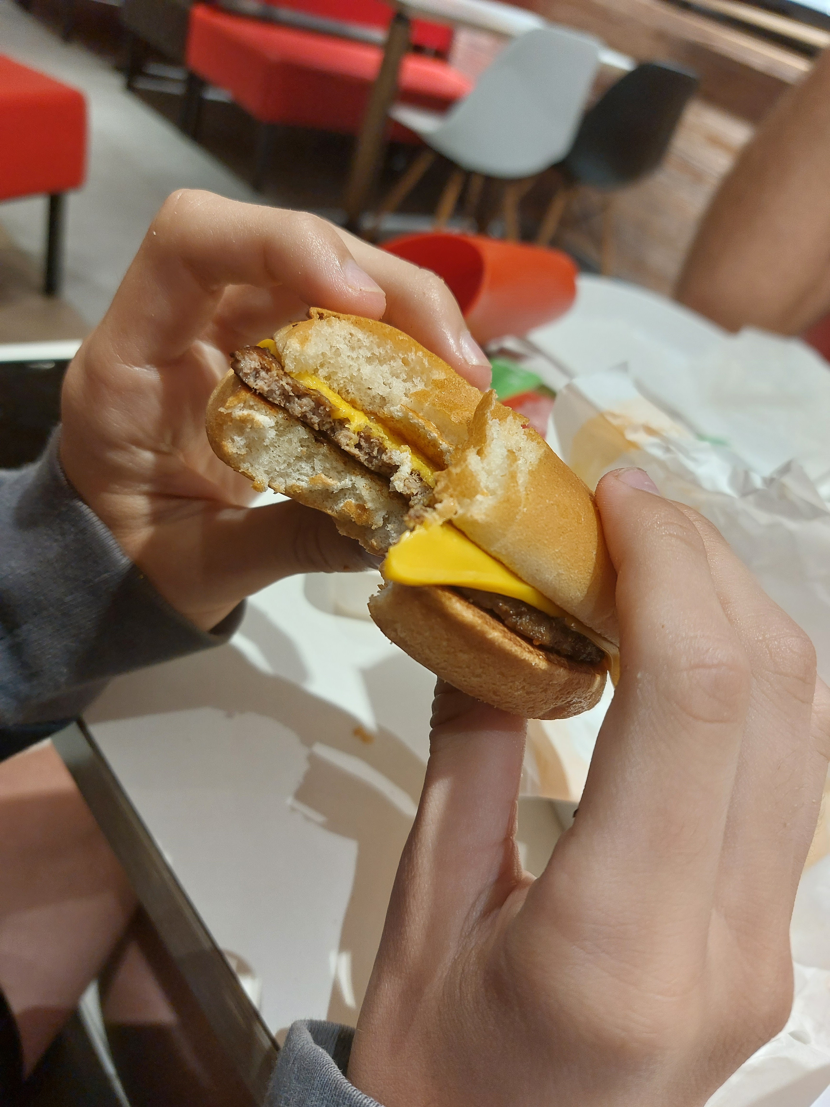 Plus que décevant, l’employée qui nous a servie n’était pas du tout aimable, il n’y avait aucun chevalet de disponible, les tables et le sol étaient plus que sale. Mon Burger était froid on en redemande un, on me redonne un froid, les tranches de fromage étaient complètement froide ce qui m’a rendu malade de plus les tomates étaient vertes donc pas mûres. Sur un Mac first poisson nous avions seulement le pain, le poisson et le fromage. Un vrai manque d’hygiène et de professionnalisme !