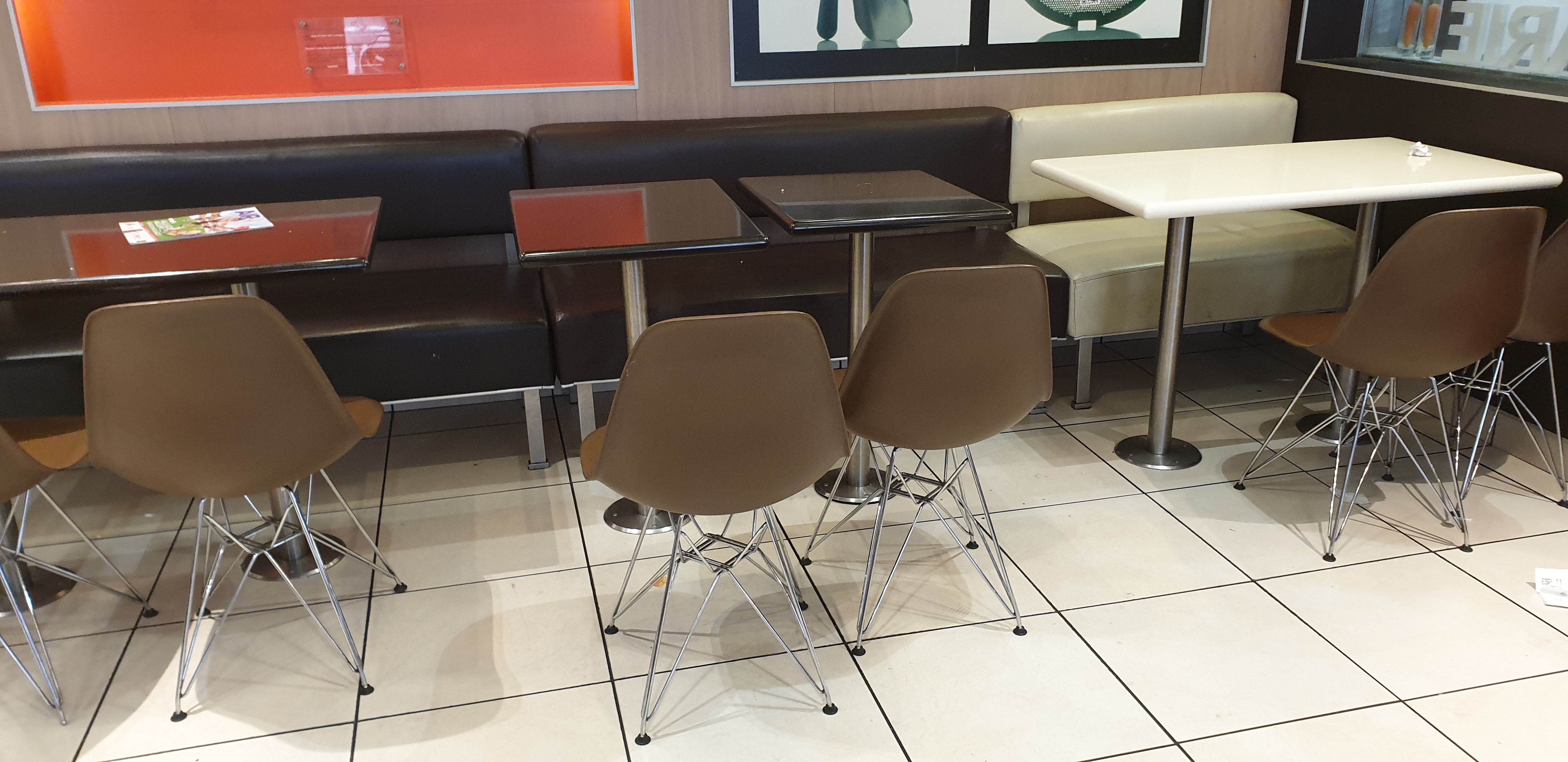 Pratique pour se restaurer rapidement. Mais franchement pas très propre, les tables pas essuyé, les fauteuils avec des emballages, et les poubelles qui débordent.