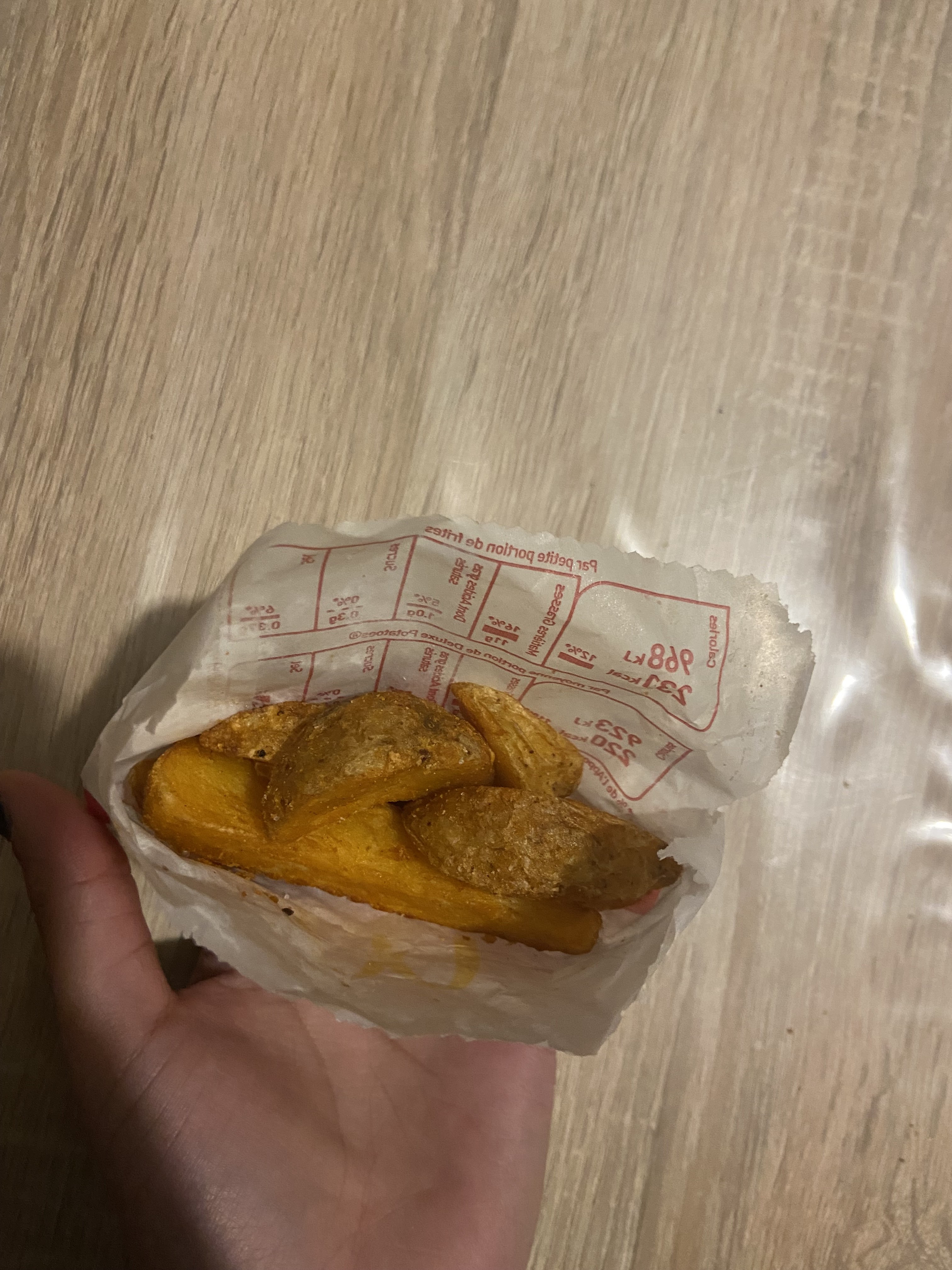 Frites froides, clairement passés, je comprend pas pk pour un happy meal ils mettent des grands gobelet... Pas pratique pour un enfant. Tables pas propre.