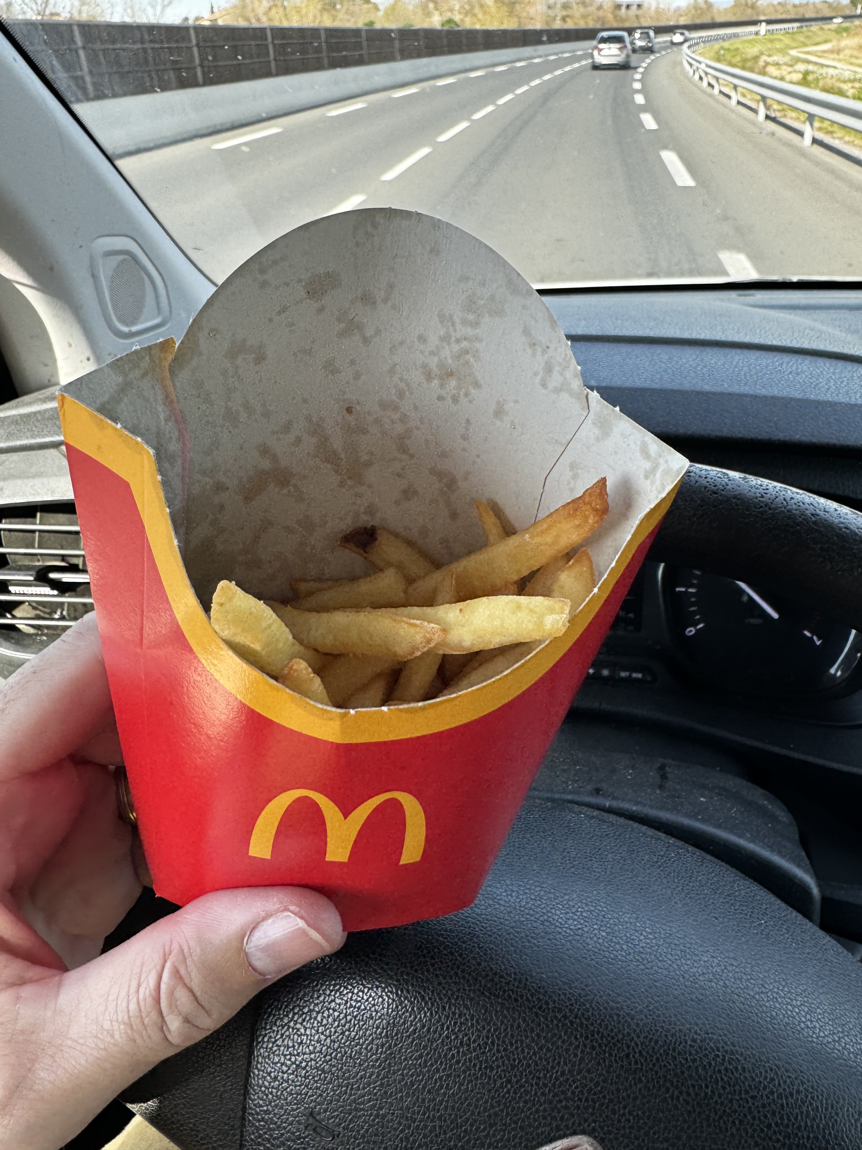 Après 1h30 de trajet de fiat serré au fond à gauche, les derrières de mes genoux transpirants peuvent enfin respirer ET QUOI DE MIEUX que le bon gros McDonald's bien américain de Narbonne. Le repas était cosy, j'étais surpris mais content que les domac utilisent de la vaisselle pour leurs boissons et leur fritasses. D'ailleurs j ai pris des potatoes et yavait comme dab une ptite frite dans l pot. Le service de la dame était super et les discussions autour de la table intéressantes. En bref un restaurant familial et qui redonne le smile sur la route vers la montagne ainsi qu'une allure un peu plus économe au vu de l'allure mesurée. MERCI MCDO POUR LES TRAVAUX