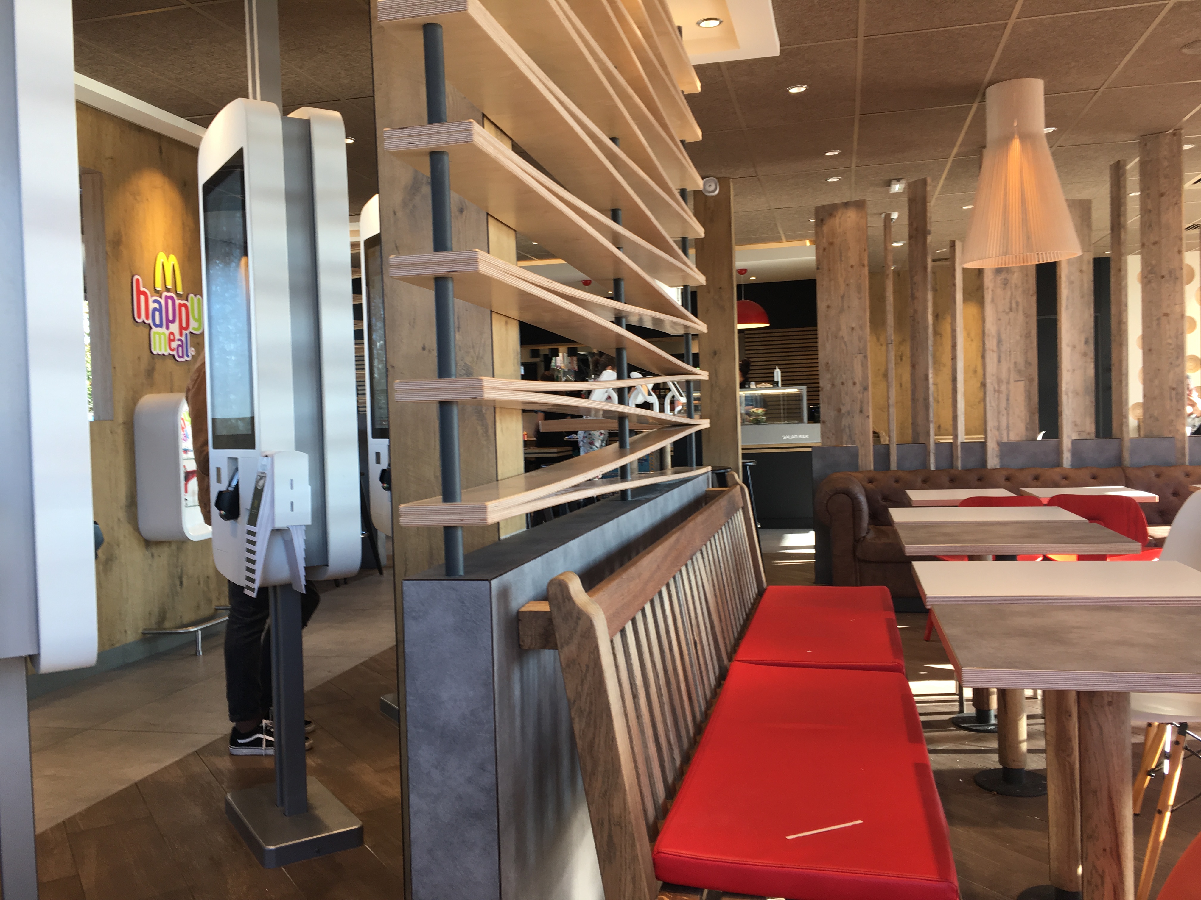 Macdo rénové récemment, avec un espace doté de tablettes prévu pour consulter facebook, twitter ou pour jouer. Sinon, Macdo identique aux autres restaurants de la chaine : Jeu pour les enfants, grande terrasse..