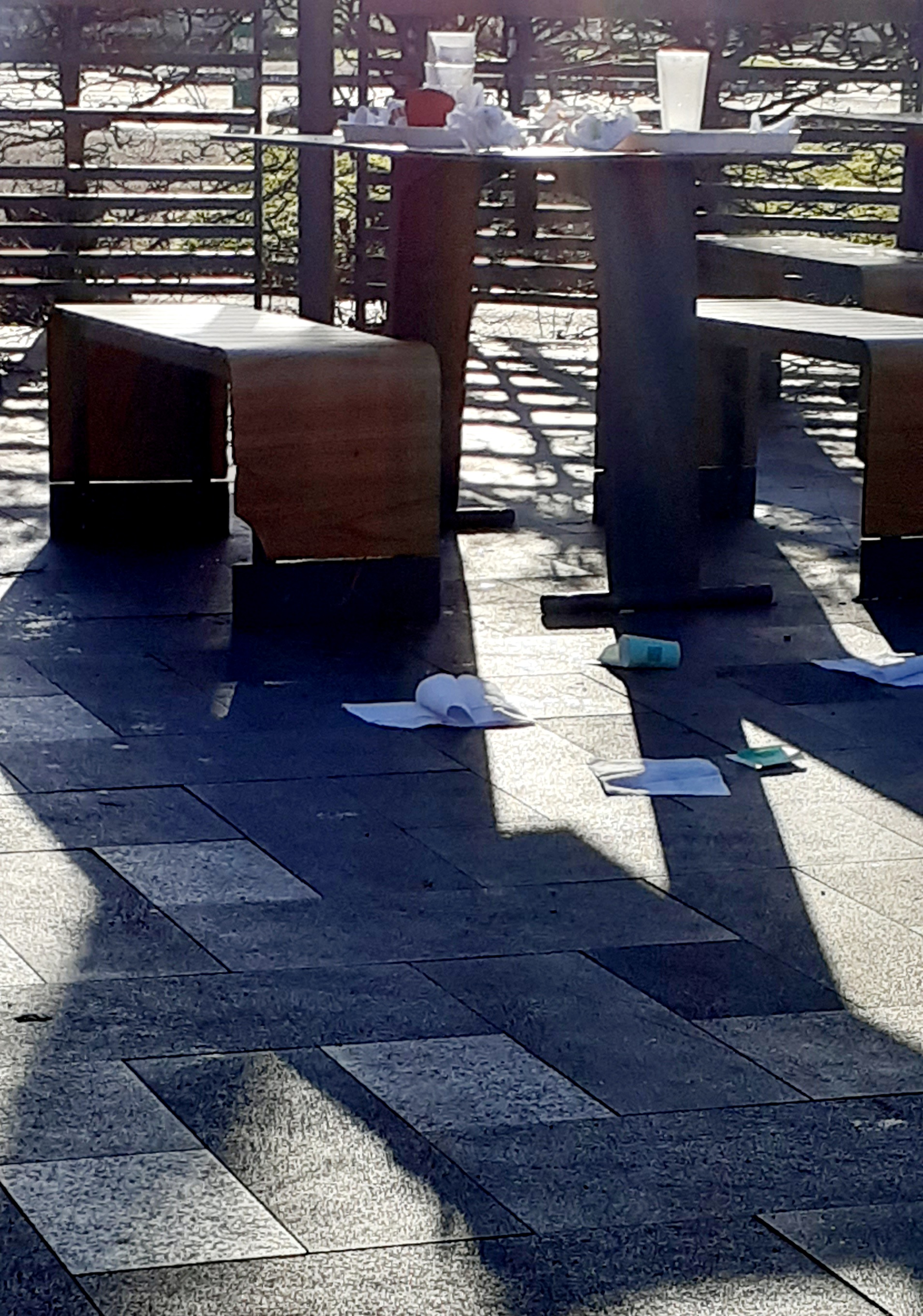 Un dimanche après midi, 15h...quelques personnes en extérieur, peu en intérieur...et pourtant pratiquement aucune table propre où poser son plateau 😡. Plateau servi sans serviette, sans cuillère, obligée de se lever pour aller chercher ce qu'il manque.