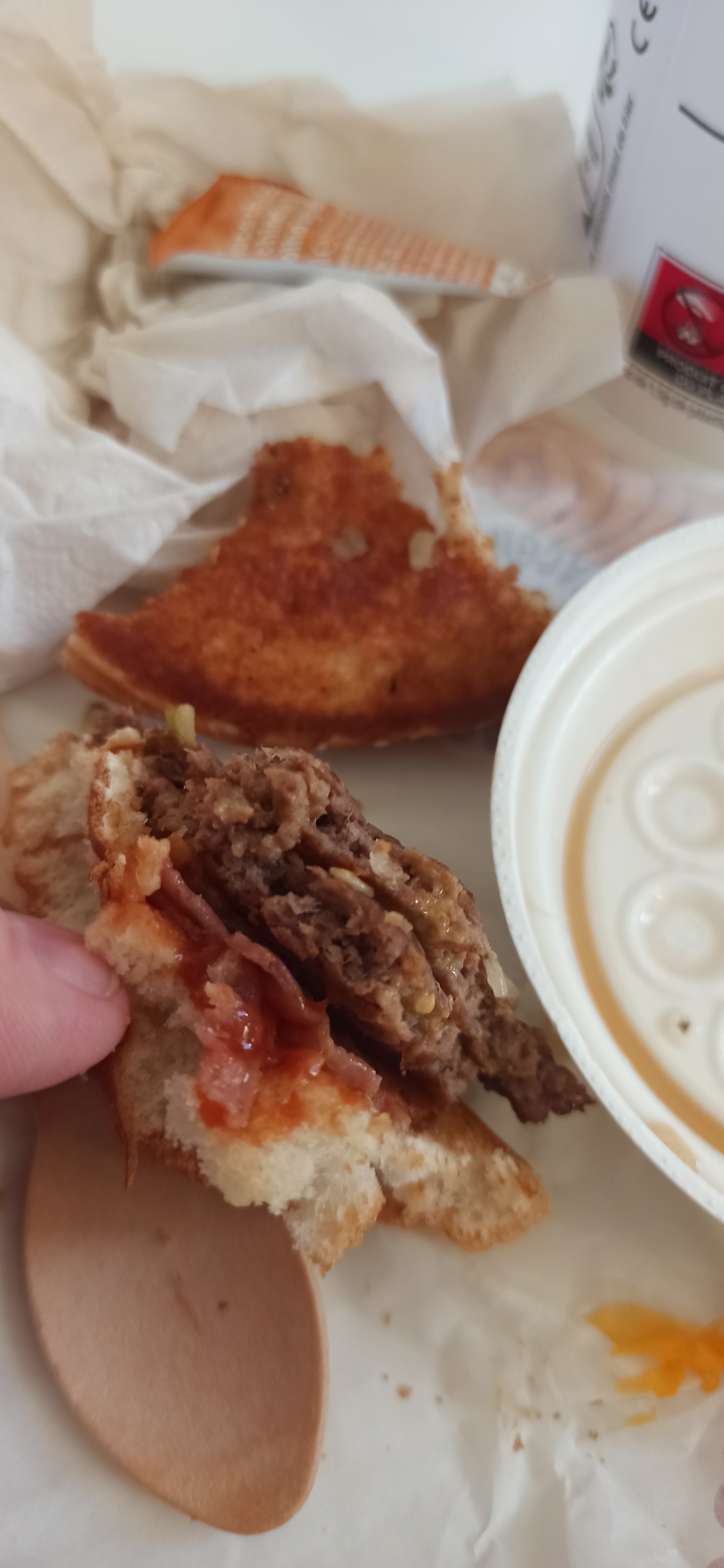 J'avais commandé un signature double cheddar et bacon. Il y a bien deux steaks, mais ni cheddar ni bacon. Et puis pas de sauce non plus. Sur l'appli on peut seulement dire qu'on aime, mais , sauf erreur de ma part, aucun moyen de contacter le restaurant quand la livraison ne correspond en rien à la commande. Je n'étais pas un grand fan de McDo, ça finit de me confirmer dans l'idée que j'en ai.