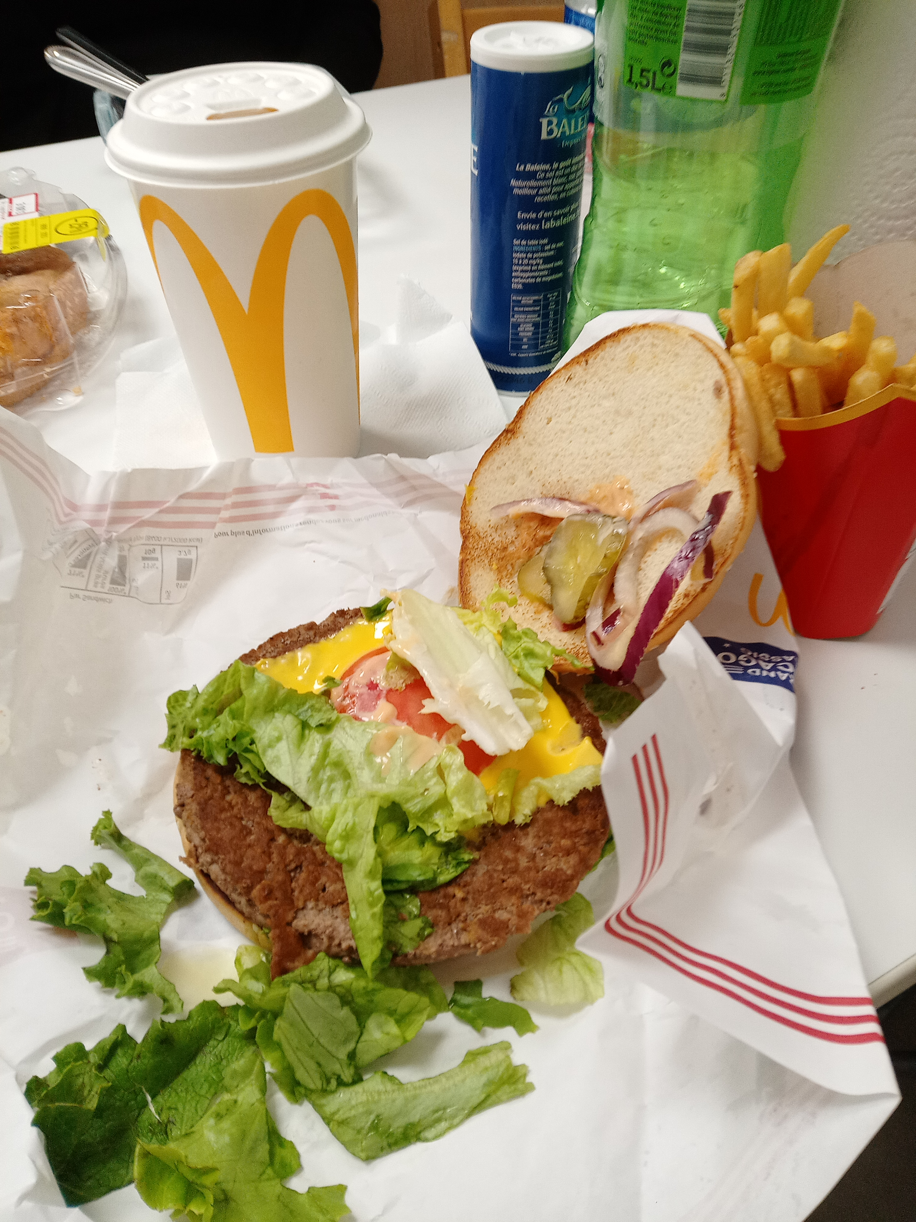 C'est un Mcdo ... Comme d'habitude dans tous les Mcdo on vous sert des burgers qui attendent sur une étagère chauffée, résultat la viande est fade, sèche. Trop cher pour une qualité aussi médiocre.