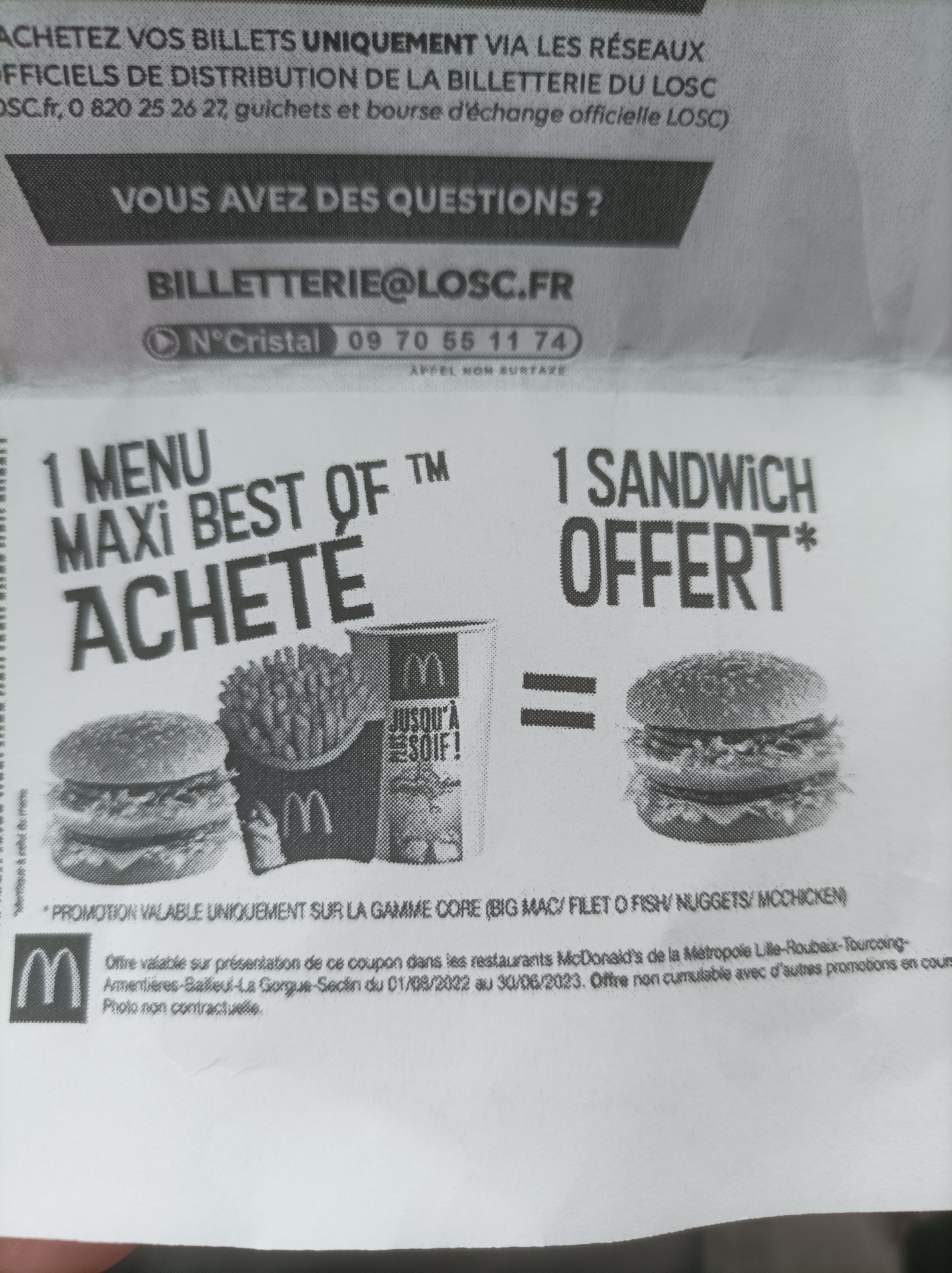 Je suis venu le 22 mars 2023 au midi j'ai patienté pendants 10 minutes car il y avait du monde. J'ai enfin pu commander mon menu j'ai souhaité bénéficier de l'offre du losc et celle ci m'a été refusée sous prétexte que ce n'est valable que le jour de match . Il y a quelques temps de cela j'ai été à celui de la cousinerie sur le même secteur et l'offre a été acceptée. Je rappelle sur le document qu'il n'est pas spécifié que l'offre est valable uniquement le jour de match . Si un étudiant vient un samedi ou mercredi bénéficie t il de ses avantages même si il n'a pas cours ? Vous n'êtes tout simplement pas commerçant !!!