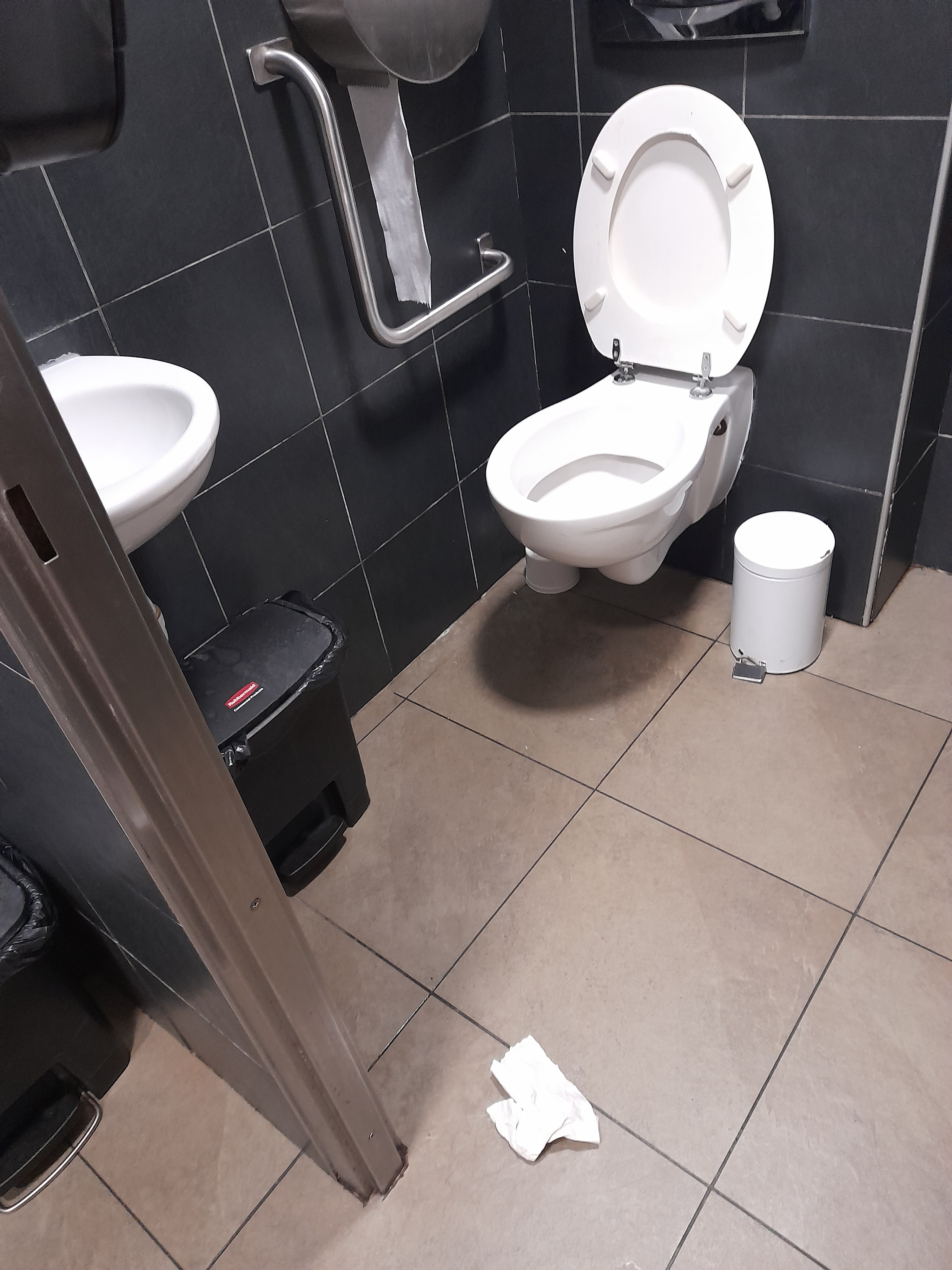 Arrivés à 11h, le sol était très sale, comme si on était en fin de service. Impossible de payer par CB sur la borne, le terminal ne marchait pas. Toilettes sans poignées ni verrou. Nous avons également demandé des plateaux supplémentaires qui sont arrivés sales et que nous avons dû renvoyer.