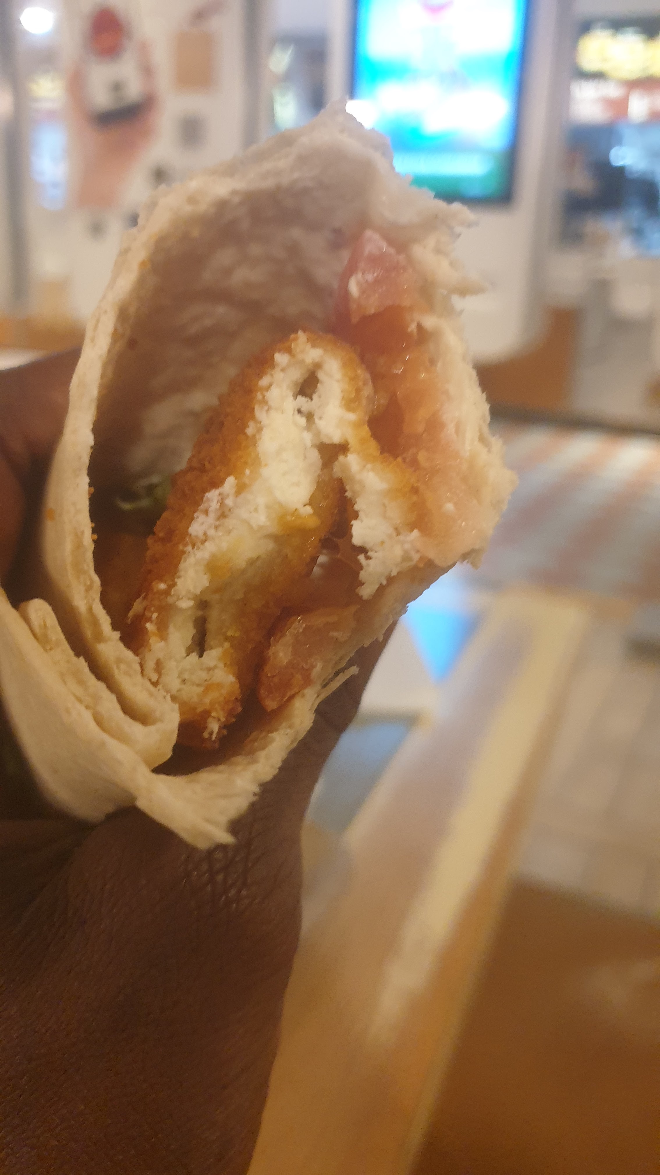 Un menu wrap chèvre, vide de garniture. Montré en caisse, ils me répondent que c'est normal. C'est dommage on ne va pas au restau pour acheter de tel produit.