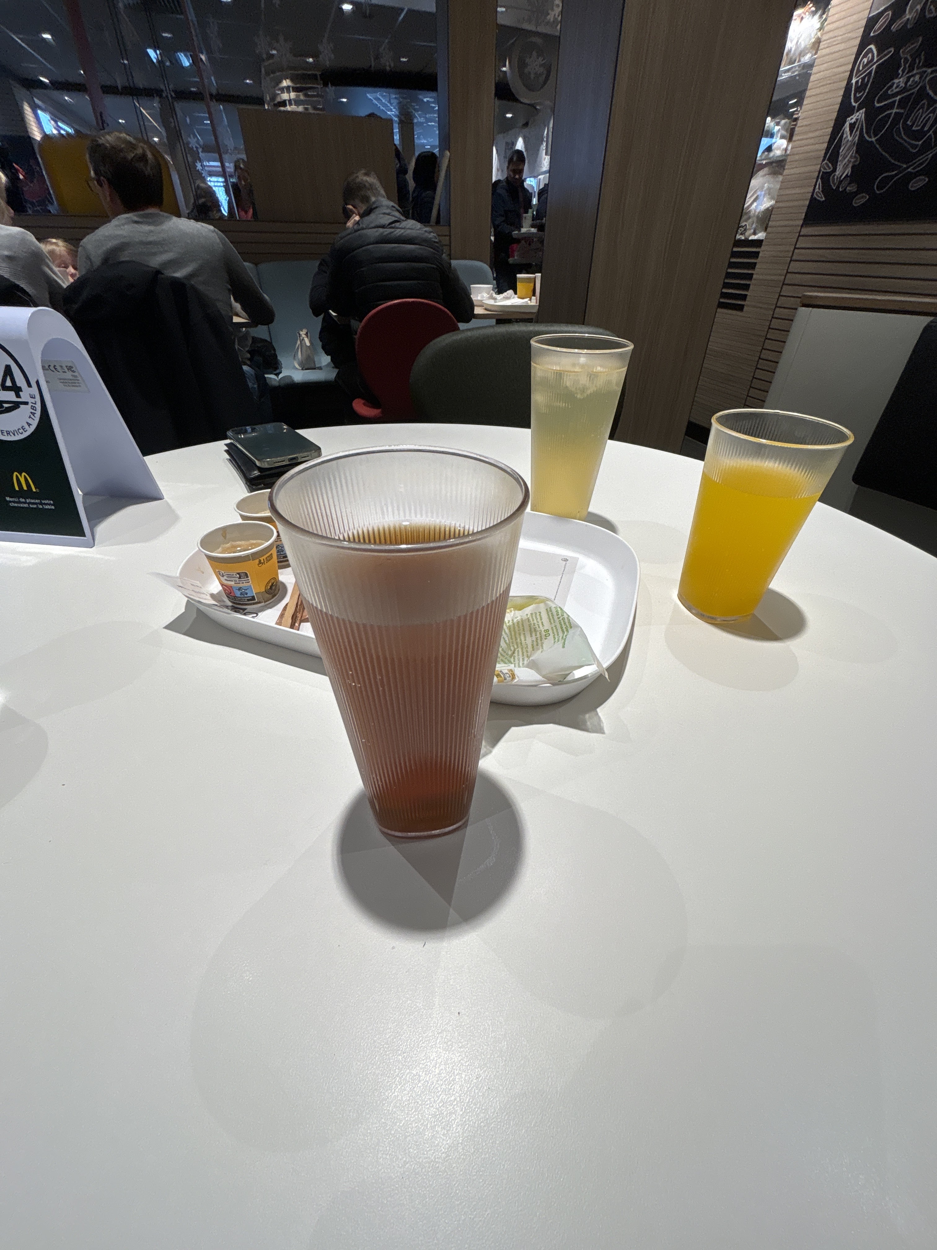 C’est quand même un comble de payer 6.20€ pour un brunch et de ne pouvoir choisir qu’un expresso. Pas de possibilité de choisir un chocolat chaud ou un café latte… Même à Lyon c’est moins cher et il y a plus de choix !!! Les McMuffin arrivent écrasé et le service à table est vraiment moyen, l’amabilité n’est pas au rendez-vous. Point positif : intérieurs et extérieurs vraiment très propres, ordonné, agréable et pour le coup, c’est un McDo très joli.