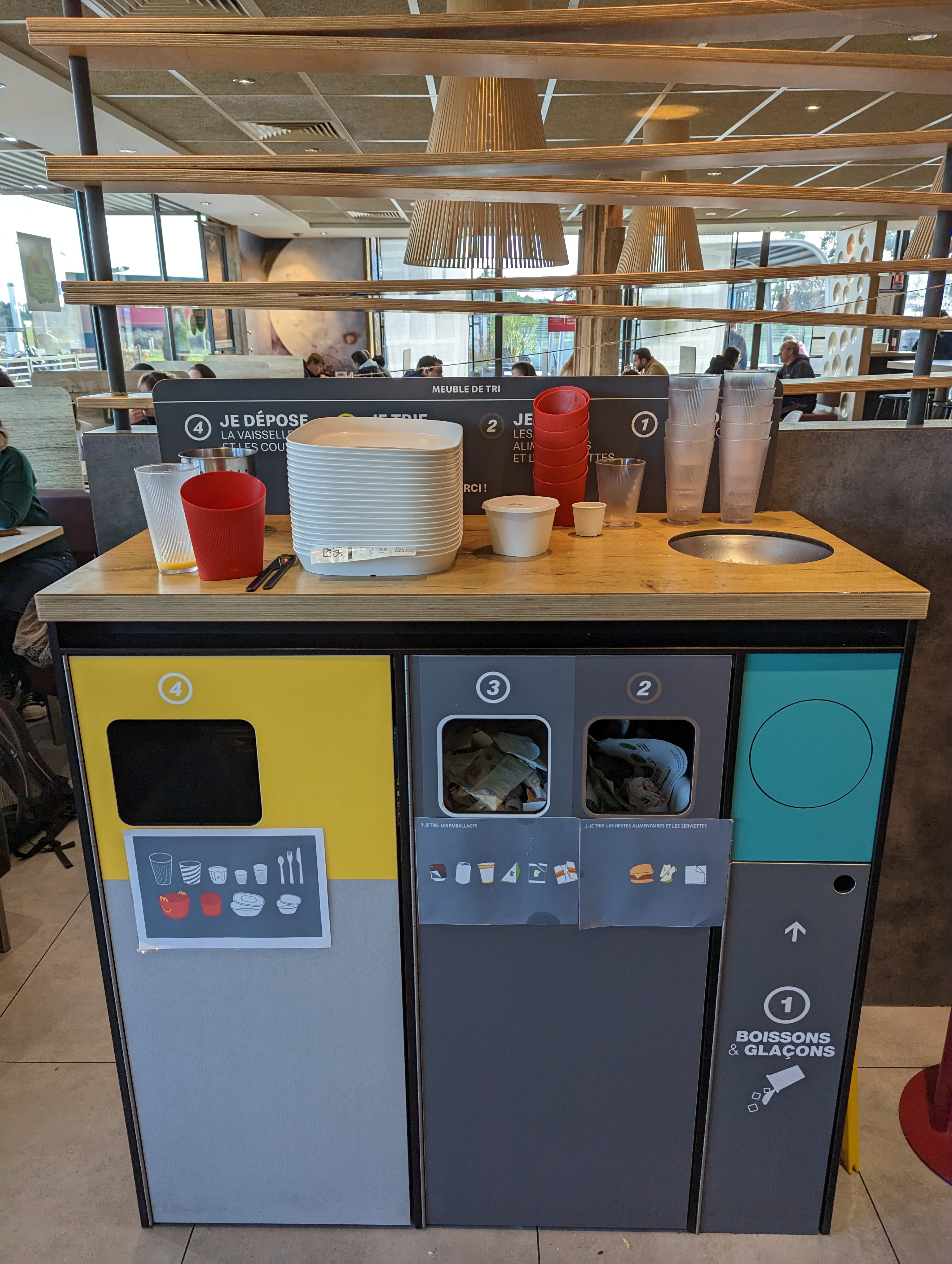 Un an après mon 1er avis. Et bien, c'est pareil!voire pire! Pour en arriver à mettre un avis sur un mcdo, il faut en tenir une couche ! Toujours pas de sauce potatoes sur nos plateaux. On les réclame à chaque fois! Et on vient en famille une fois par semaine. A croire que la direction veut faire des économies. 20 minutes d'attente alors que le restaurant est à peine fréquenté. Les plateaux s'empilent sur les poubelles et les tables avoisinantes tant les poubelles n'ont pas été vidées depuis un bon moment. Encore une erreur dans la commande et enfin, un banc extérieur cassé sur lequel, si on s'assoie, on risque une sacrée chute! C'est de pire en pire.