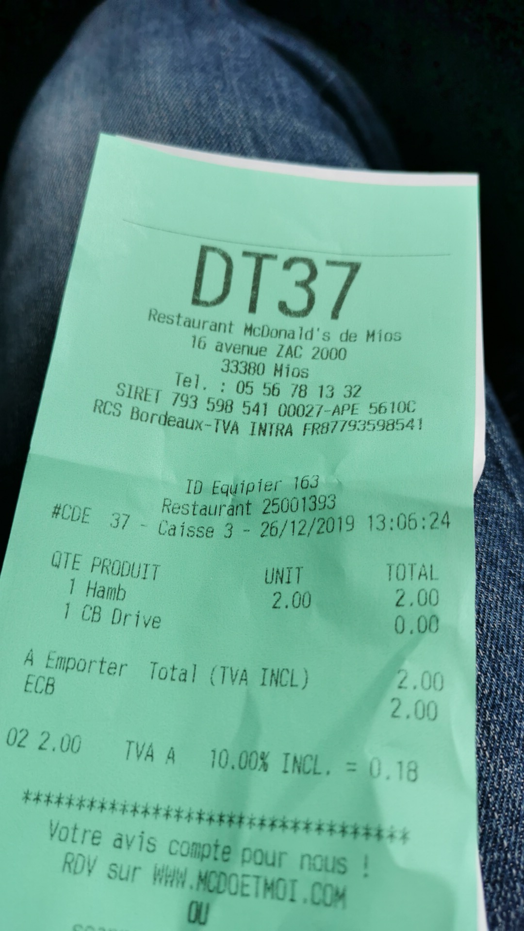 Malgré un personnel aimable, encore une commande incomplète ce qui est presque systématique au McDonald's de Mios... Alors oui j'aurais du vérifier avant de faire 10km pour rentrer chez moi mais je me suis dit que comme le restaurant était vide, que la charge de travail était modérée, le personnel ne devrait pas être distrait... et bien mon fils n'aura pas son happy meal ce soir 😉