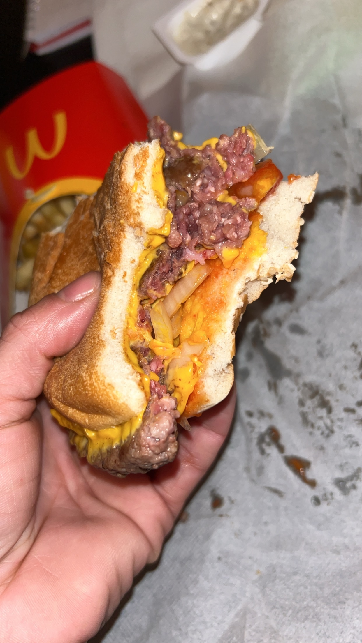 Coca sans glaçons, pas de sauces pour les potatoes et un énorme trou dans mon macfleury ! Nul, la qualité est de moins en moins bonne ces derniers temps, pour finir, un simple doible cheese à 5.15€ même avec l'inflation c'est une honte !!