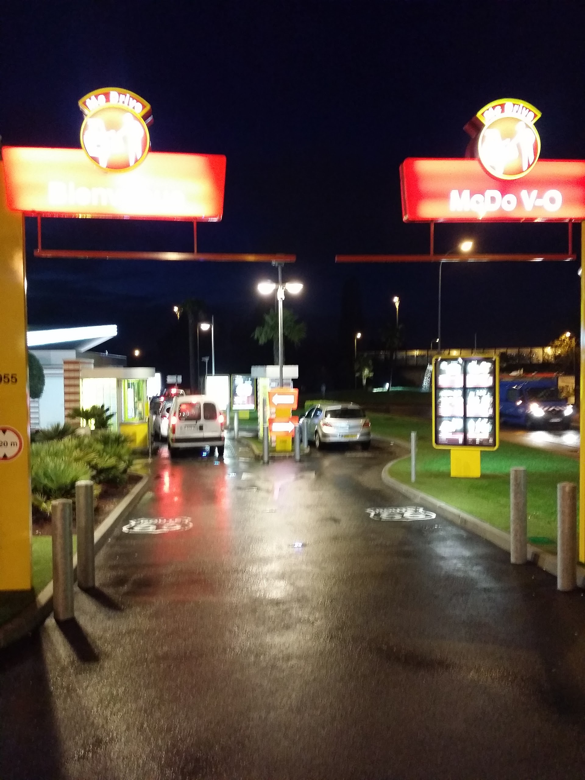 Design à l'américaine, drive vraiment (très !) rapide, parfois -5mn alors qu'il y a +10 voitures.. un seul oubli sur une trentaine de passage, 24/24h. Dans 3/4 des Mcdonald's (surtout celui de Bègles, quelle horreur) on attend 30mn, galère à la commande, il manque qlq chose, c'est froid.. bah pas ici.