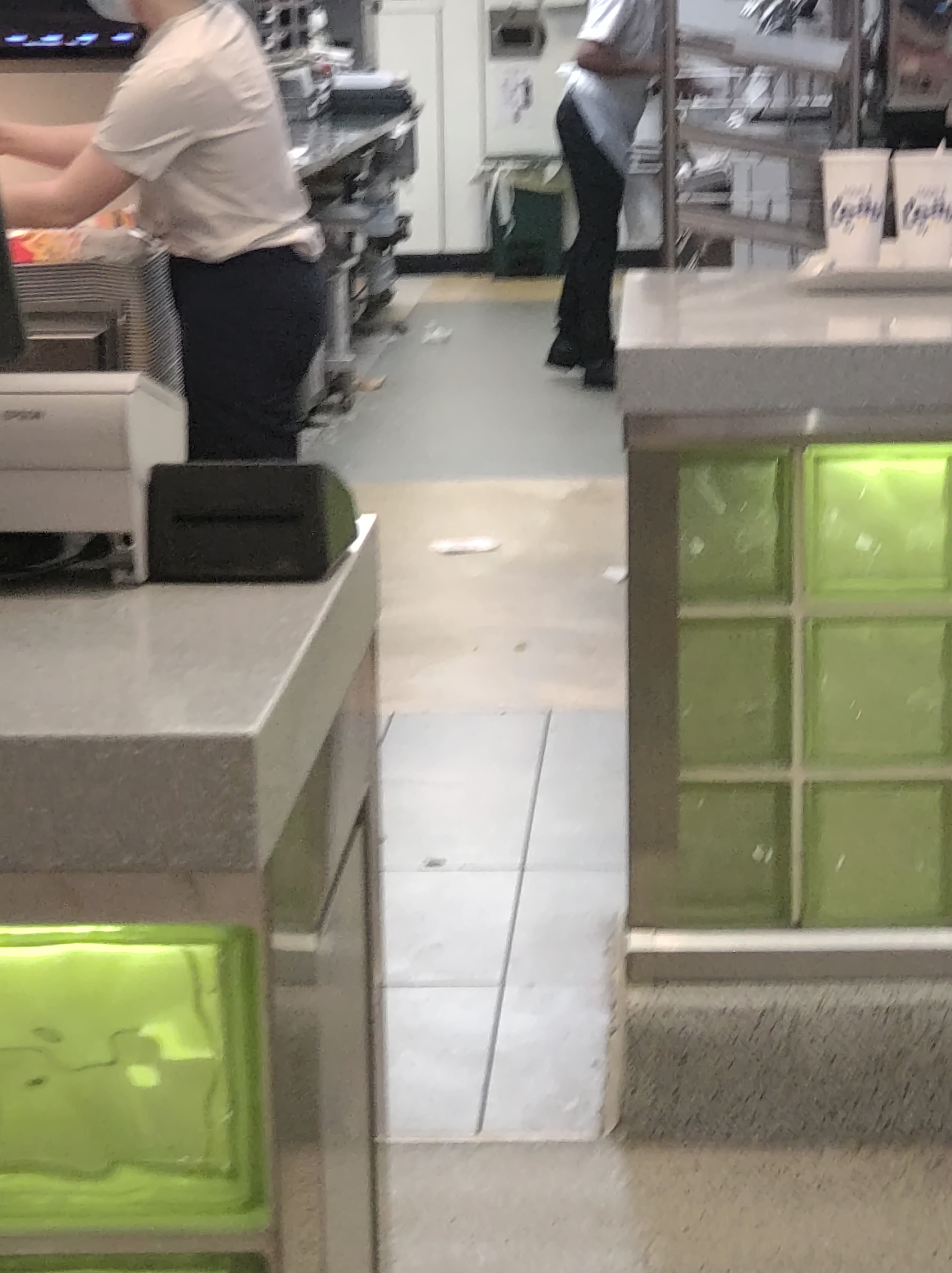 En ce dimanche soir 21h50, nous avons eu la surprise de decouvrir une salle degueulasse, pas du tout nettoyé. Mes claquettes restaient collées au sol durant l attente de 10 min pour servir deux pauvres menus. Je n'ai pas de photos des wc, mais une personne a decidé de faire ses besoins dans un coin en plus du fait qu'elles etaient dans un sale état. Bref c'etait la fin du service...plus de motivation surement pour nettoyer...j'espere que les cuisines ne sont pas aussi sales que l'interieur. Ah et eviter de mettre des frites froides melangées aux chaudes.