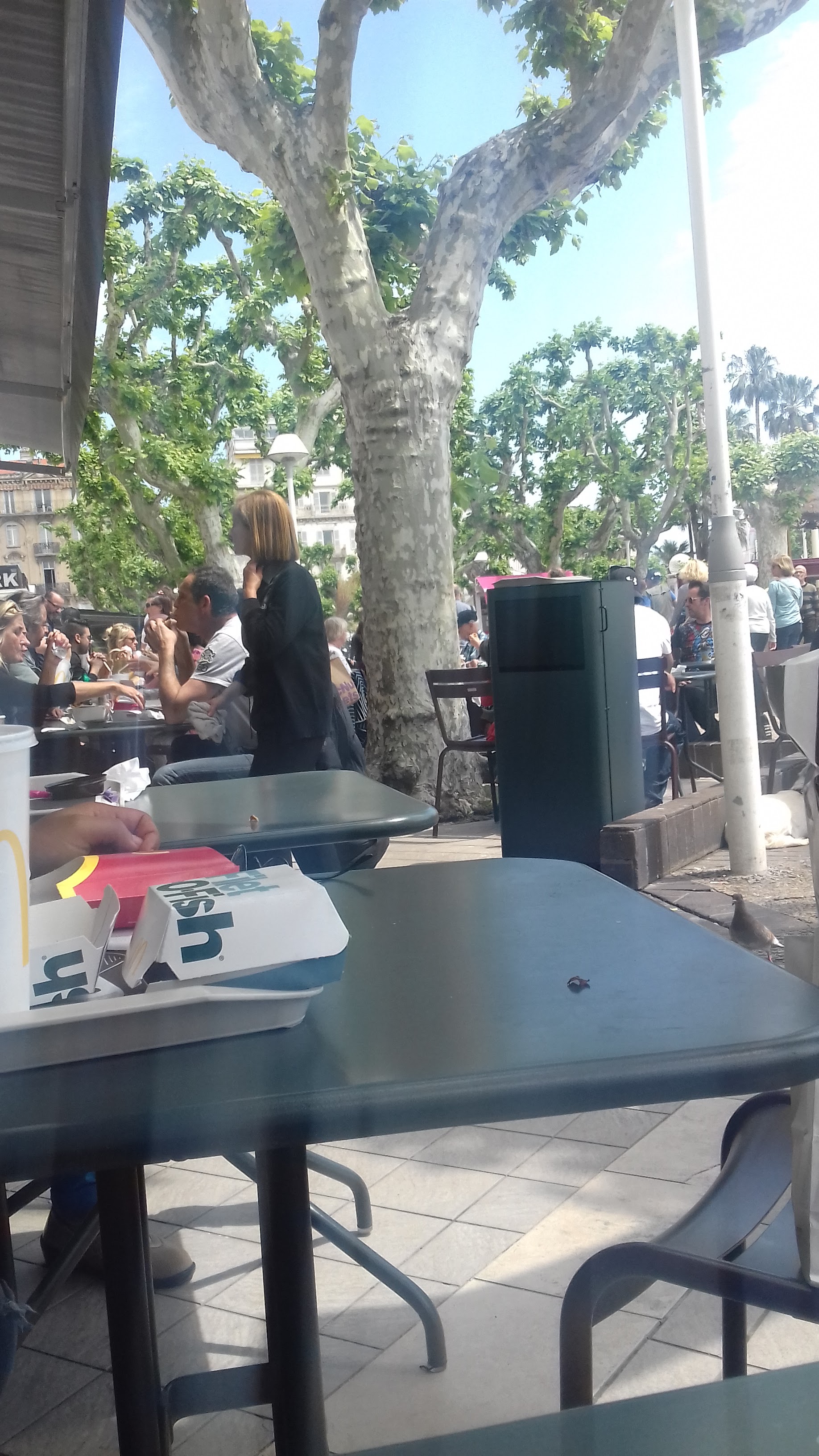Beaucoup de monde . Les tables n'étaient pas débarrassées, nous avons dû les nettoyer nous même. Mais passons pour ce détail. Nous avons reçu assez rapidement notre commande, ce qui est positif. Le vrai problème était au niveau des WC. Je n'ai jamais vu des toilettes aussi dégoûtante. Avec une aussi forte affluence il serait judicieux de mettre une personne au niveau des sanitaires