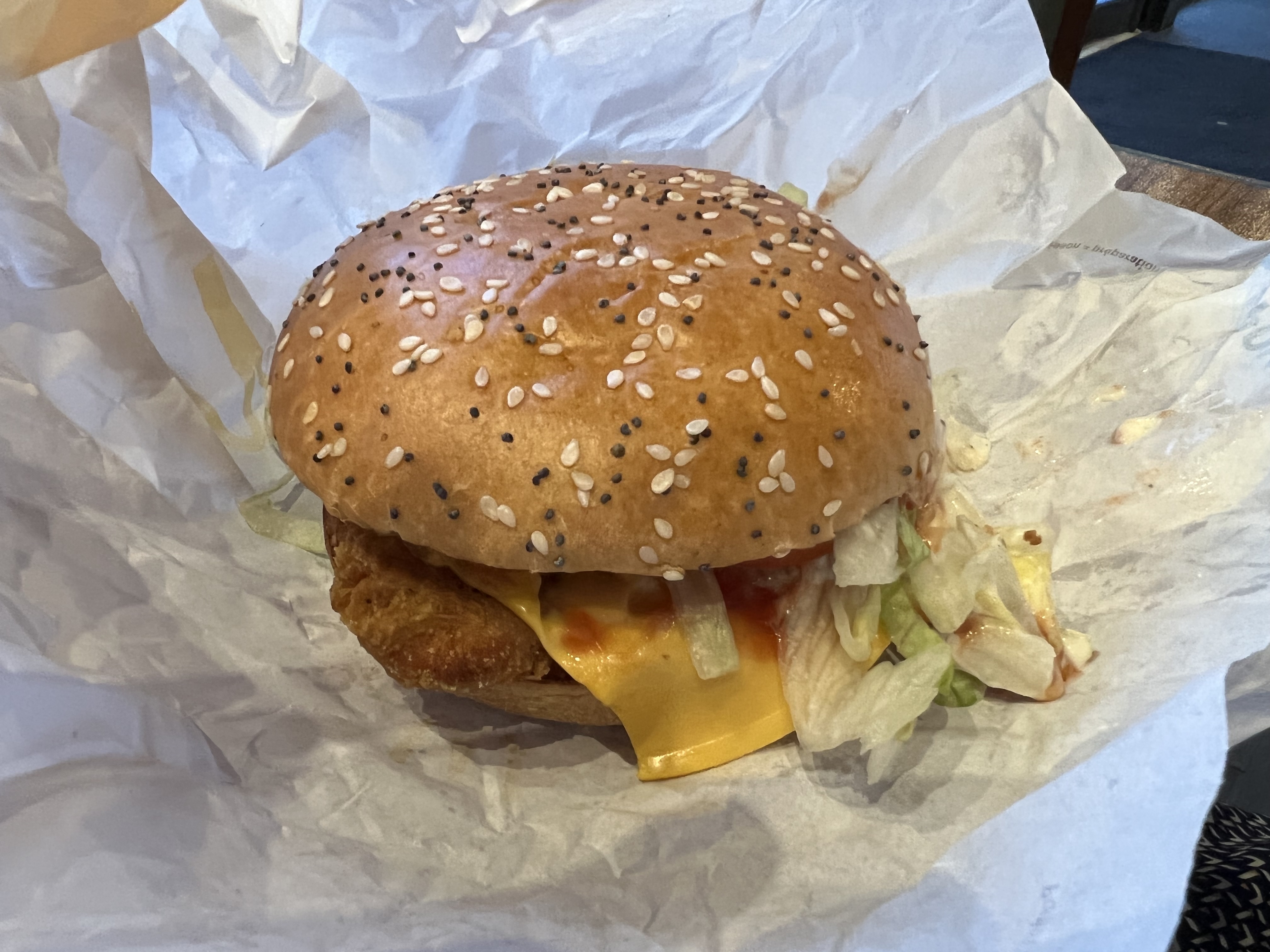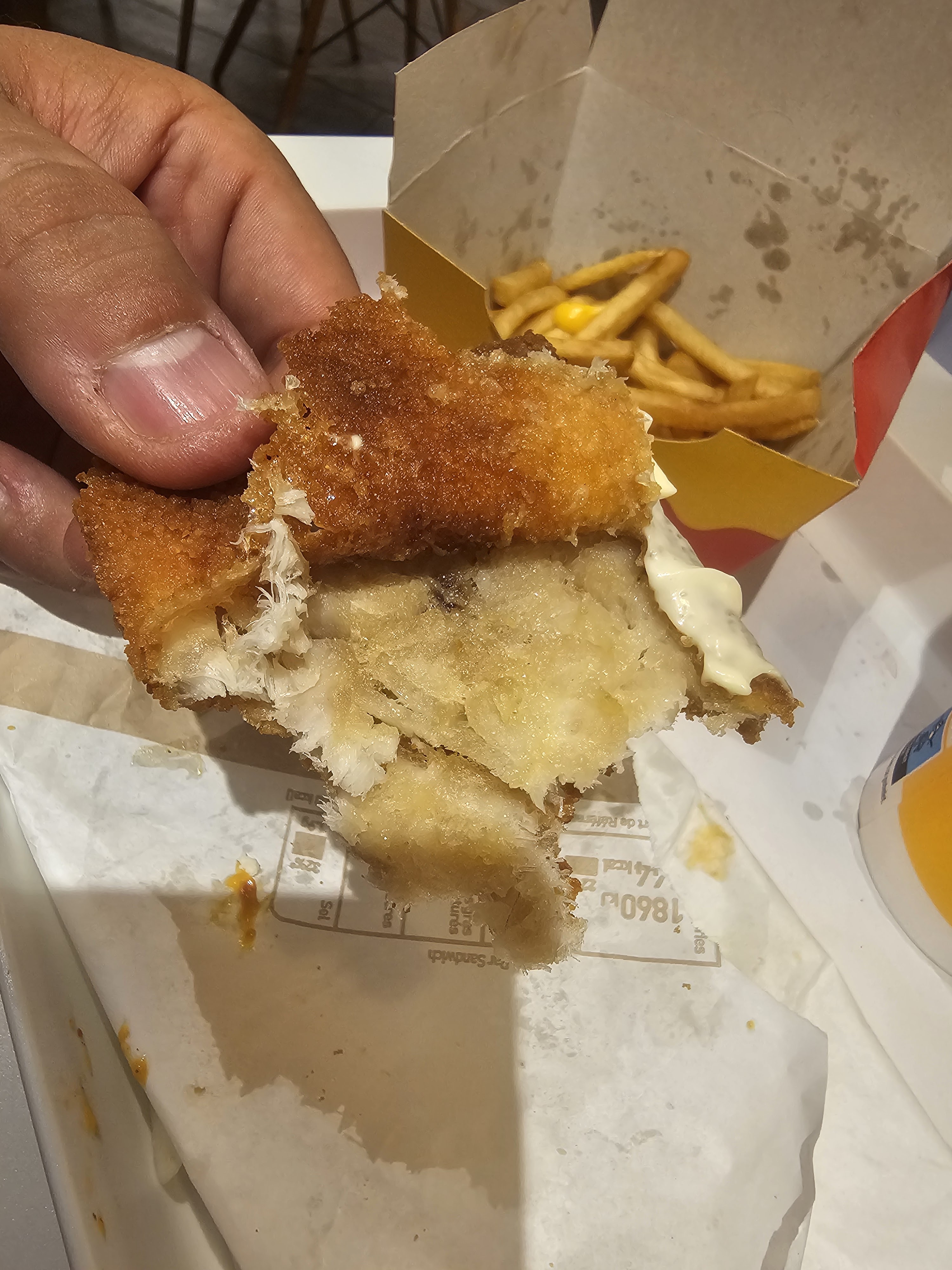 C'est quoi ça comme burger ? Pas de condiments, quasiment pas de sauce, le poulet pas assez cuit et en plus de ça à peine chaud. On ne nous a pas même pas prévenu, juste qu'il n'y avais comme d'habitude plus de glace chocolat ... Nous ne sommes pas les seule, des amis on commander 15min après nous et c'était la même chose! Merci Macdo 30€ de commande pour ça.. c'est aberrant.. Ps: nous avons commander dimanche 23/01 environ à 20h15/30