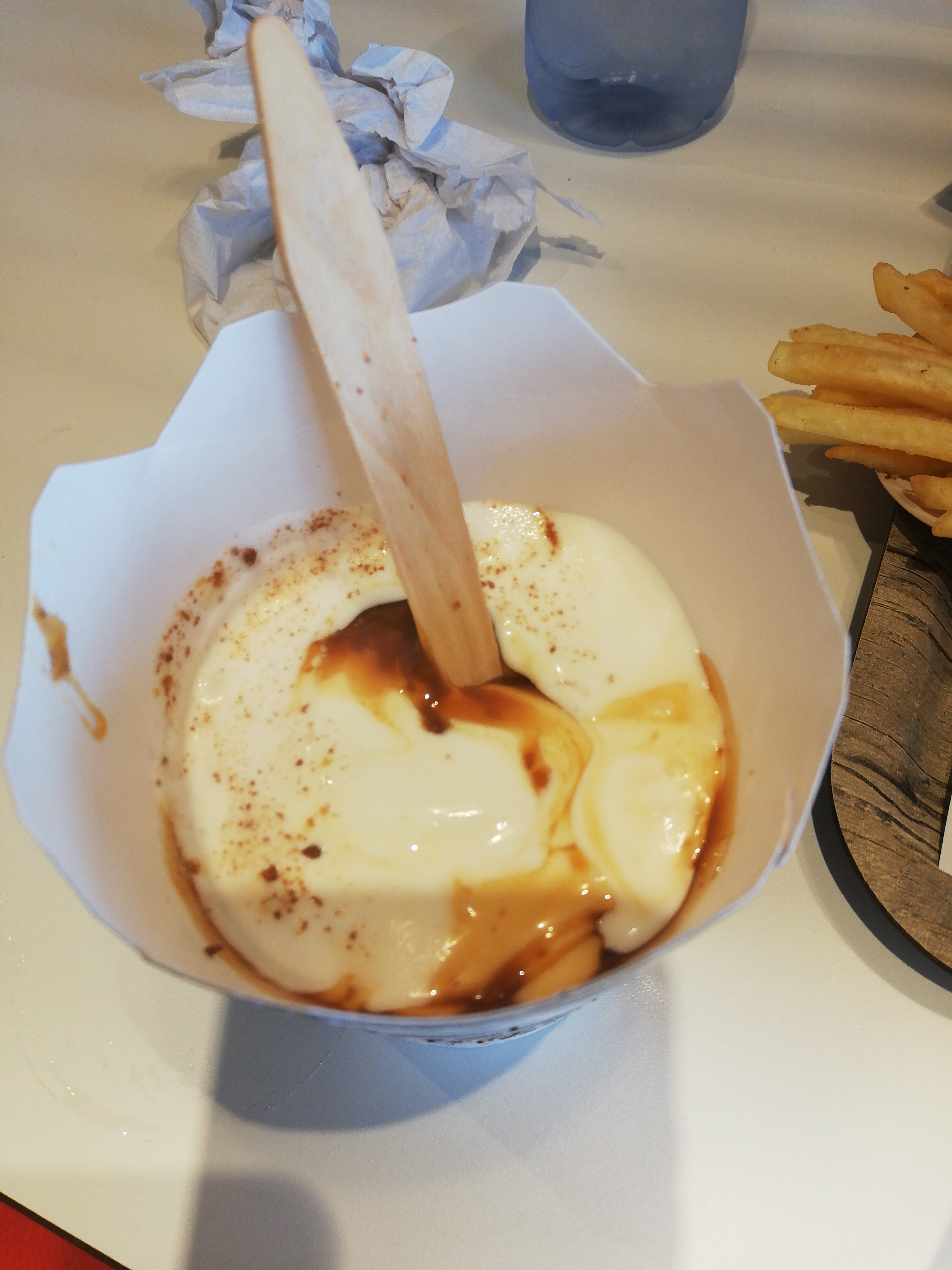 Repas froid, glace fondu sans daim, une seule sauce gratuite, espace très petit quand il y a un peut de monde, on reviendra pas !