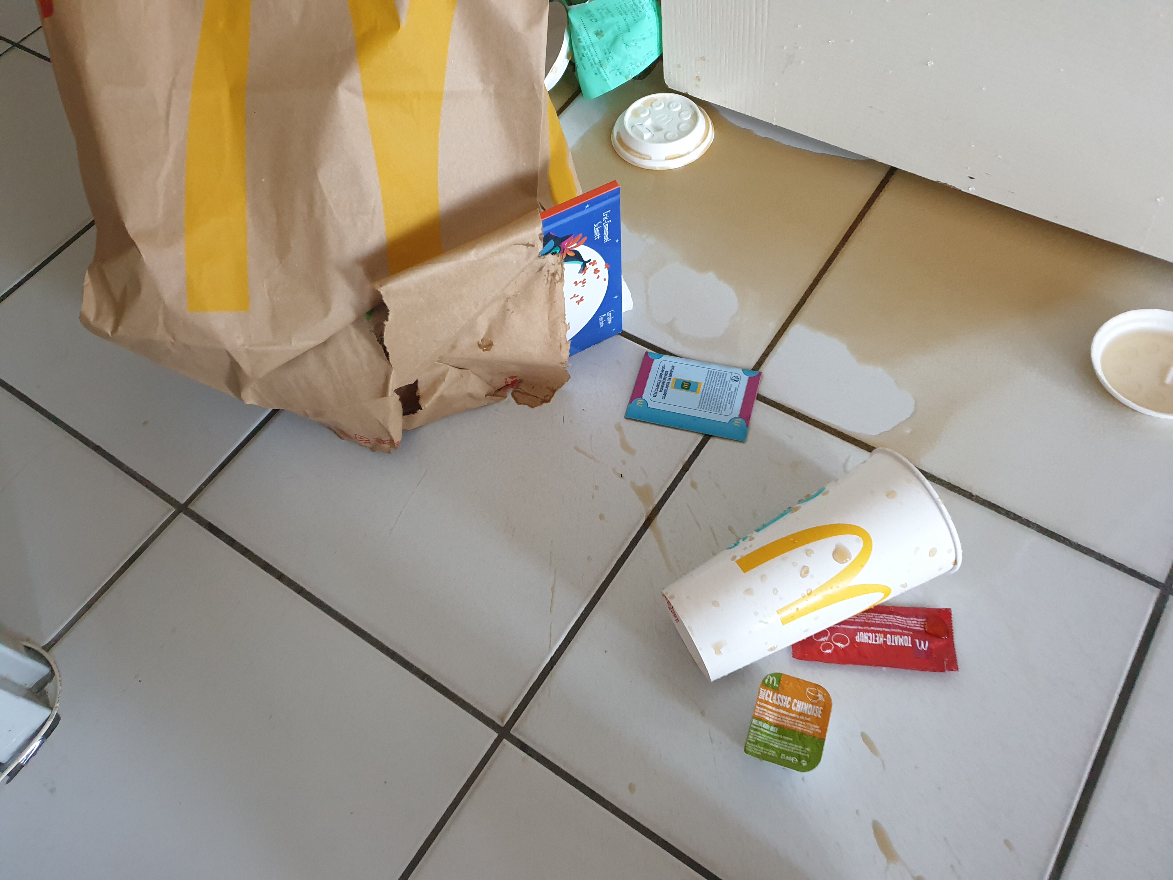 Merci pour le packaging coca et hamburger mis à l'envers voici le résultat à la maison merci pour mon fils de 6 ans qui attendait son burger!!!😡😡😡😡😡😡 comme d'hab quand on fait des Drive à St gilles c'est une catastrophe je ne recommande pas!👎👎👎 Surtout merci pour le pain moisi du McDo je vais pas faire 30 km pour le ramener!!😡😡😡 bref a décommandé d'urgence!⛔️⛔️⛔️⛔️ et encore merci pour les serviettes essuis mains!!😡😡 bref je m'y arrête quand j'ai vraiment pas le choix les enfants aiment bien McDo mais moi c'est négatif!!😡😡👎👎 ça devient vraiment du discount alimentaire à un tarif bien trop cher!!!