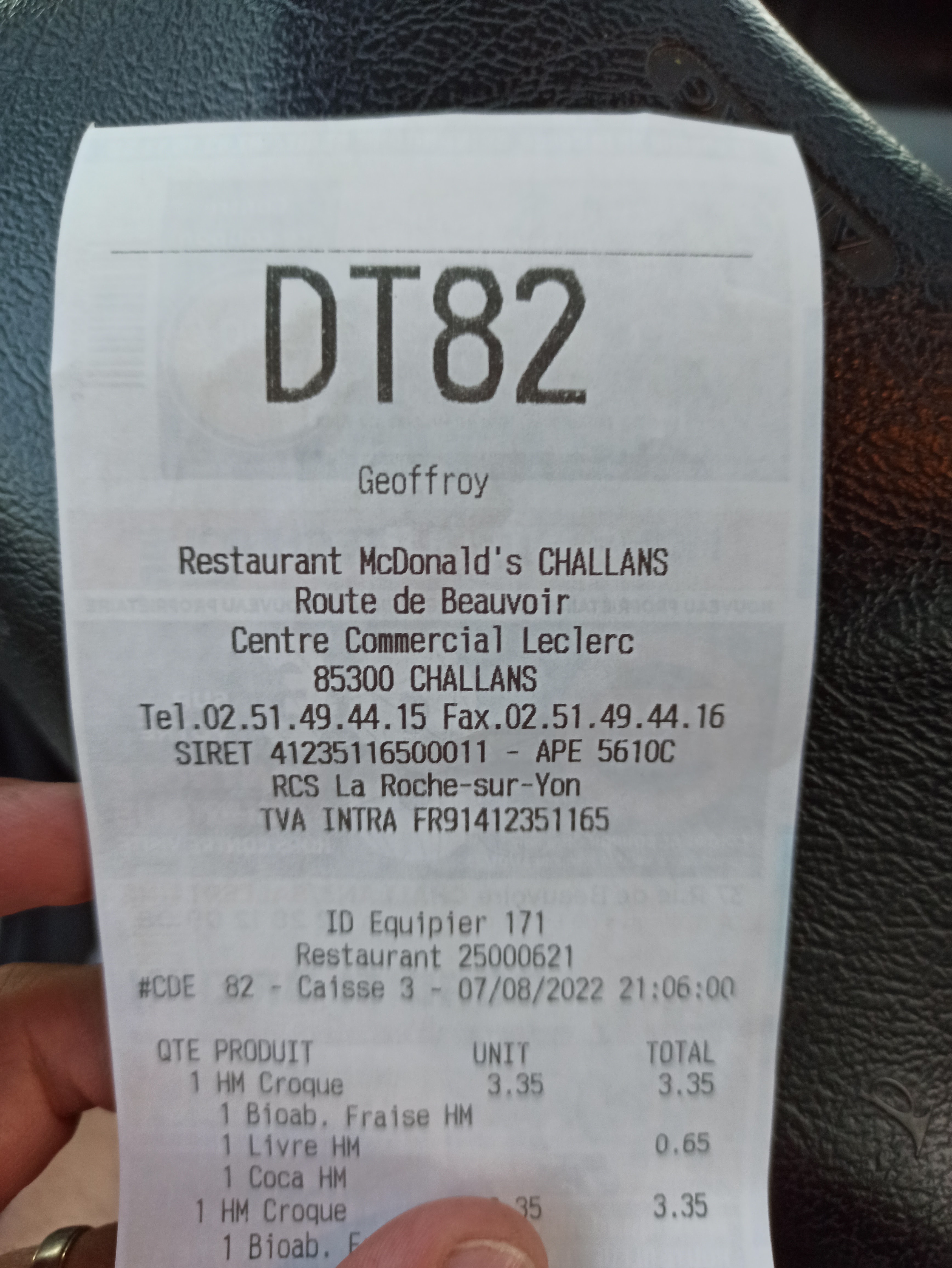 Pour commencer tout d'abord j'aimerais vous dire que ce n'est pas mon genre de chose de publier des critiques sur Facebook mais là trop c'est trop. Quand on va au McDonald's challans et que l'on demande un 280 sans fromage et que l'on se retrouve avec un 280 sans tomate qu'on demande un Best Of signature beef BBQ et que l'on se retrouve avec un Best Of signature poulet et que quand on boit son Ice-T et qu'on trouve qu'il a un goût bizarre et et qu'on le compare avec celui de son fils voilà ce qu'on trouve. Encore une fois merci McDonald's challans de ses commandes toujours préparés avec grand soin.