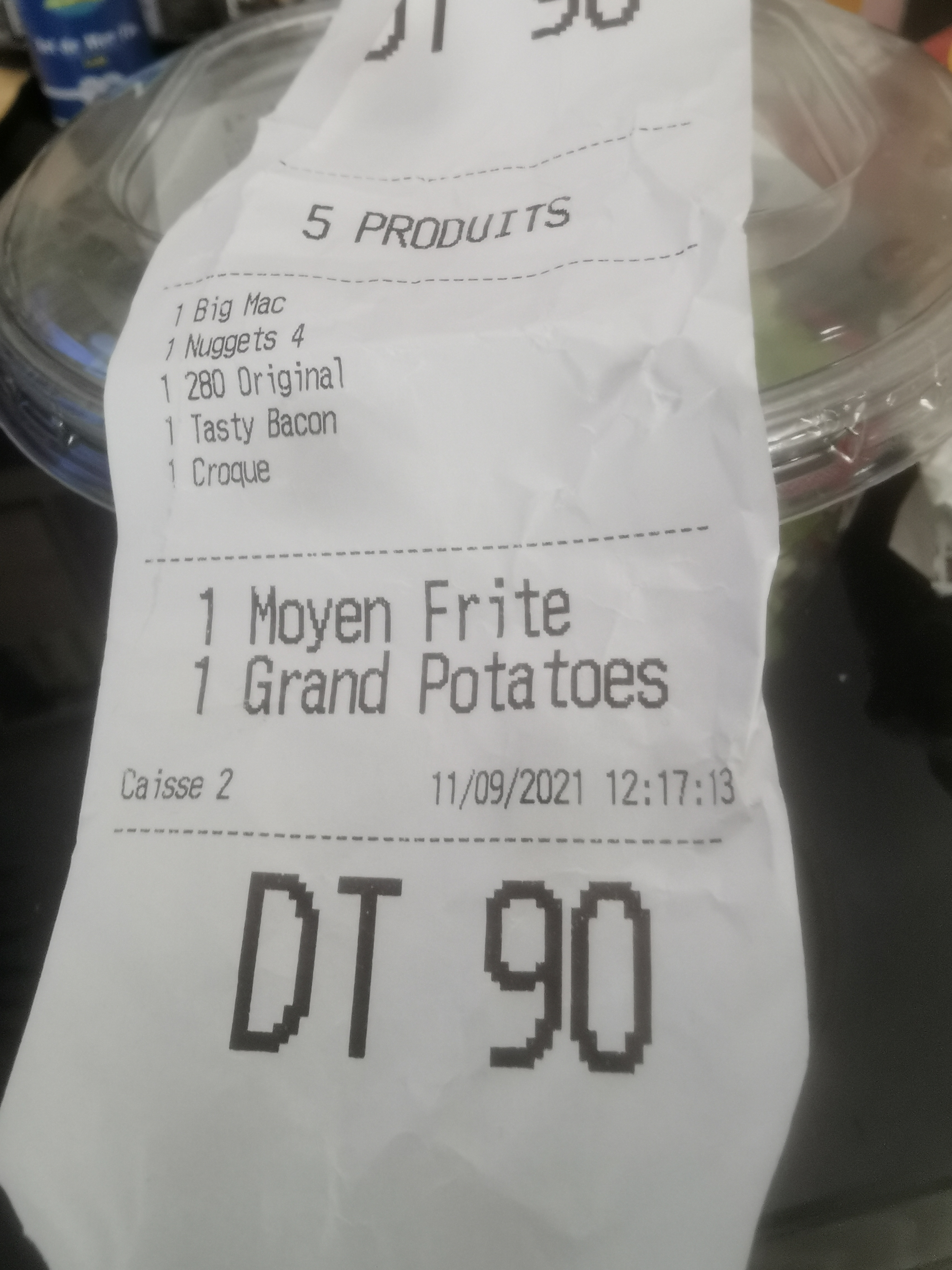 Mon menu était froid ! Et j’ai eu la chance d’avoir une potatoes dans ma boisson ! Mes frites à moitié rempli je ne recommande pas du tout !!