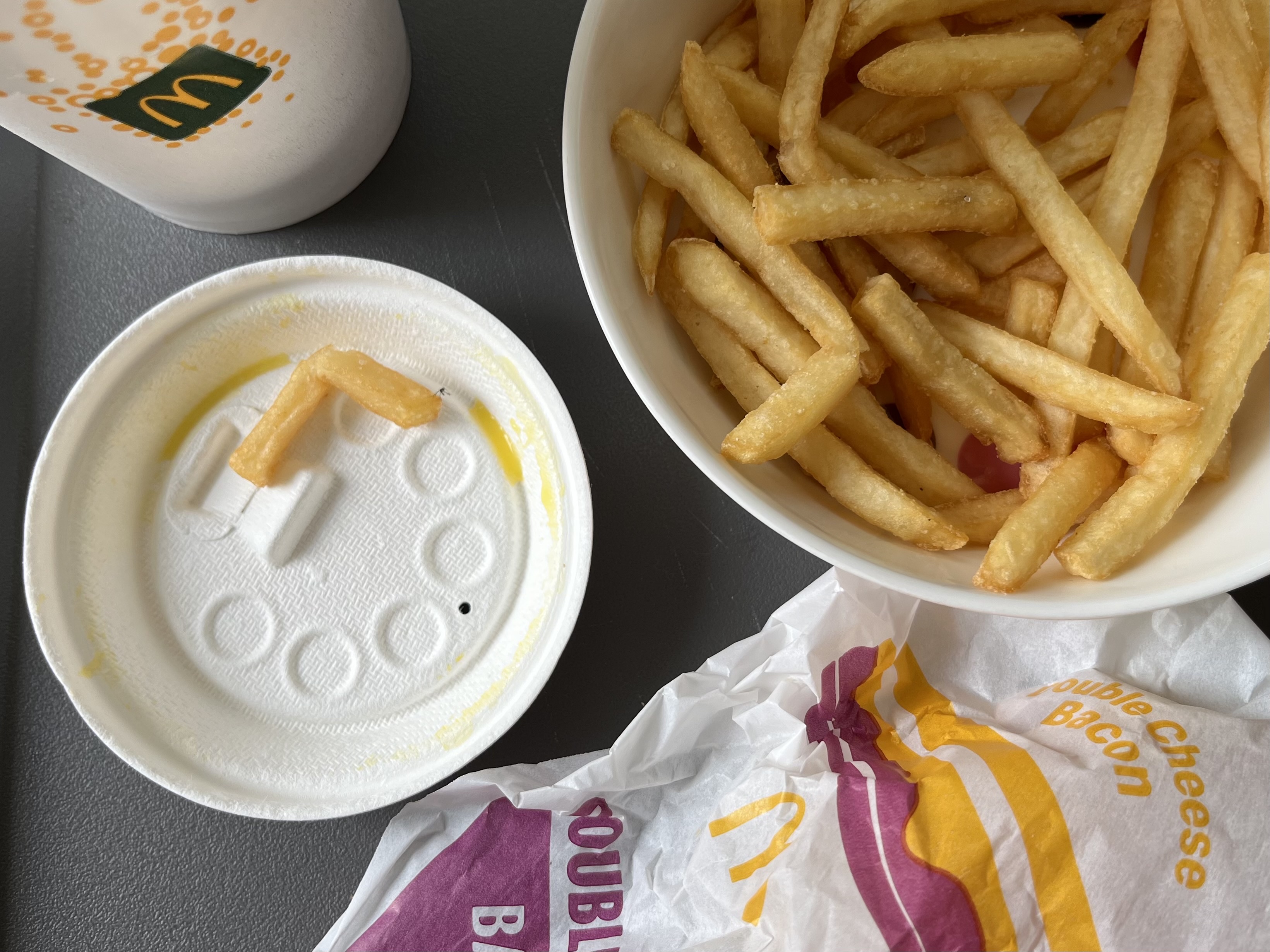 Déjà on a l'impression qu'on va se faire frapper par les raclis qui viennent. Ensuite on est resté 20 minutes devant le comptoir, on voyait la commande toute prête rester intouchée pendant tout ce temps. La faim ne faisait que monter et les ressources étaient faibles. Heureusement que mon ami m'a sauvé à l'aide de ses frites qu'on a délicieusement grignoté en attendant.