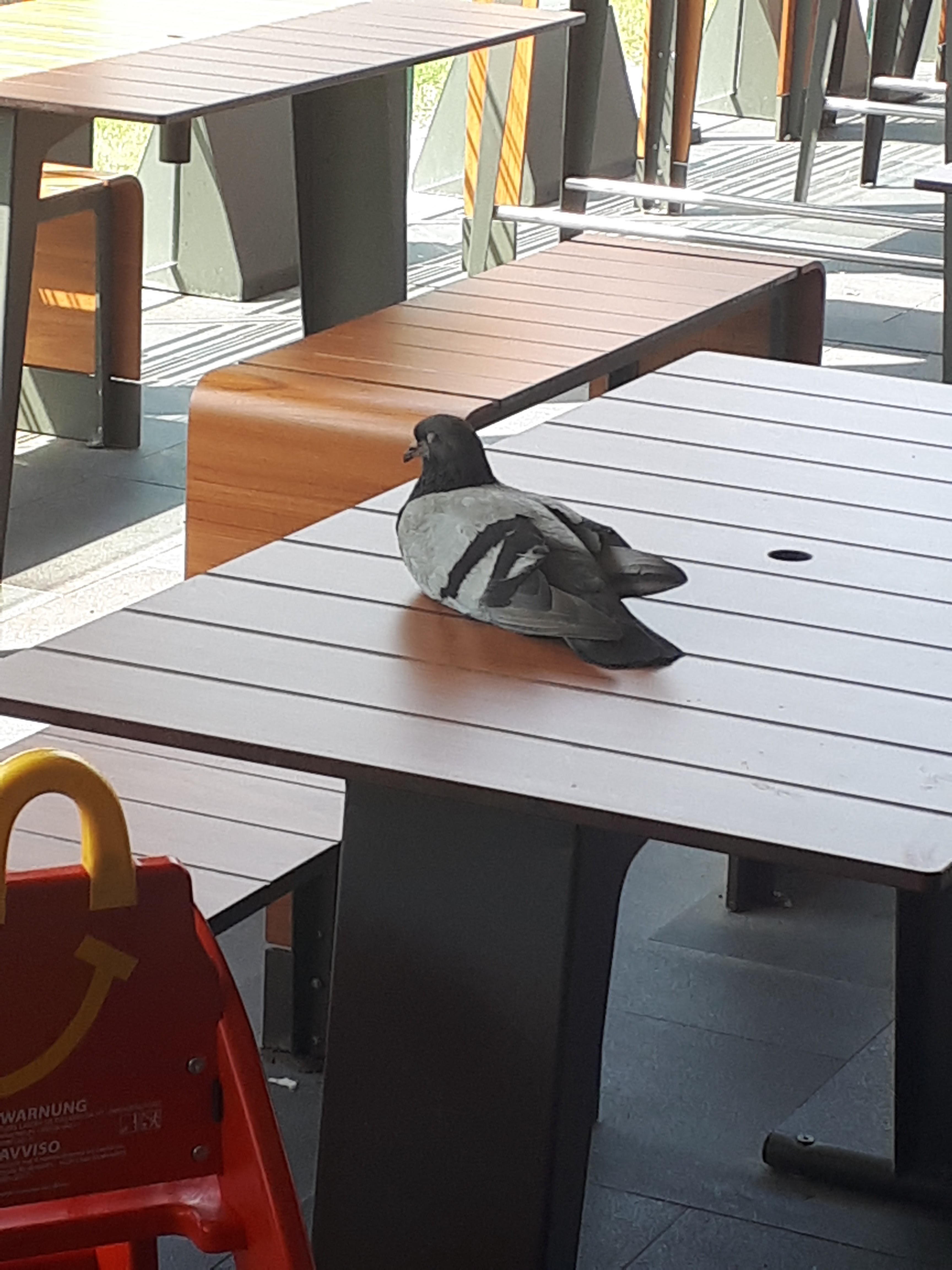 Les pigeons et les guêpes se mêlent du repas. pour cause : - Poubelles non vidées qui débordent - Nourriture qui traîne au sol (intérieur et extérieur) Dommage pour un mcdo ou la cuisine est bonne