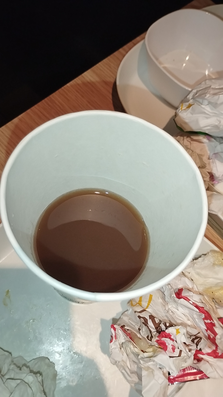De passage sur la route du retour des vacances Service catastrophique J ai juste commandé deux petits cafés un expresso et un noisette. Pris a la borne à 18h48 Je me présente pour payer mes 2€ en caisse on me dire d attendre assis sur une banquette et ensuite j attends 12min cafés toujours non servis , je me présente au comptoir et je demande si c'est normal d attendre autant pour deux cafés, on me répond qu'il fallait payer en caisse.. c'est une blague ? Pas d'excuse de manque de personnel.. elles étaient sept et pas une ne communique entre elles..🙄 Je paie,je donne 10€ et on me rend 2€ ..euh même ça elles ne savent pas compter 10-2=8 Je lui fais remarquer et on le dit Ah la boulette.. Bref Résultats café dégueulasse,froid et même pas bons (dans le mien où est la saveur noisette.. nulle part) Mon mari a du y retourner.. Pour le temps perdu soit 30 min au total on aurait même pas du me les faire payer .. Ah mac do est tombé bien bas au niveau de la qualité,la quantité et du service déplorable. Pas étonnant que l on aille après a la concurrence Fini je ne m y arrêterais plus