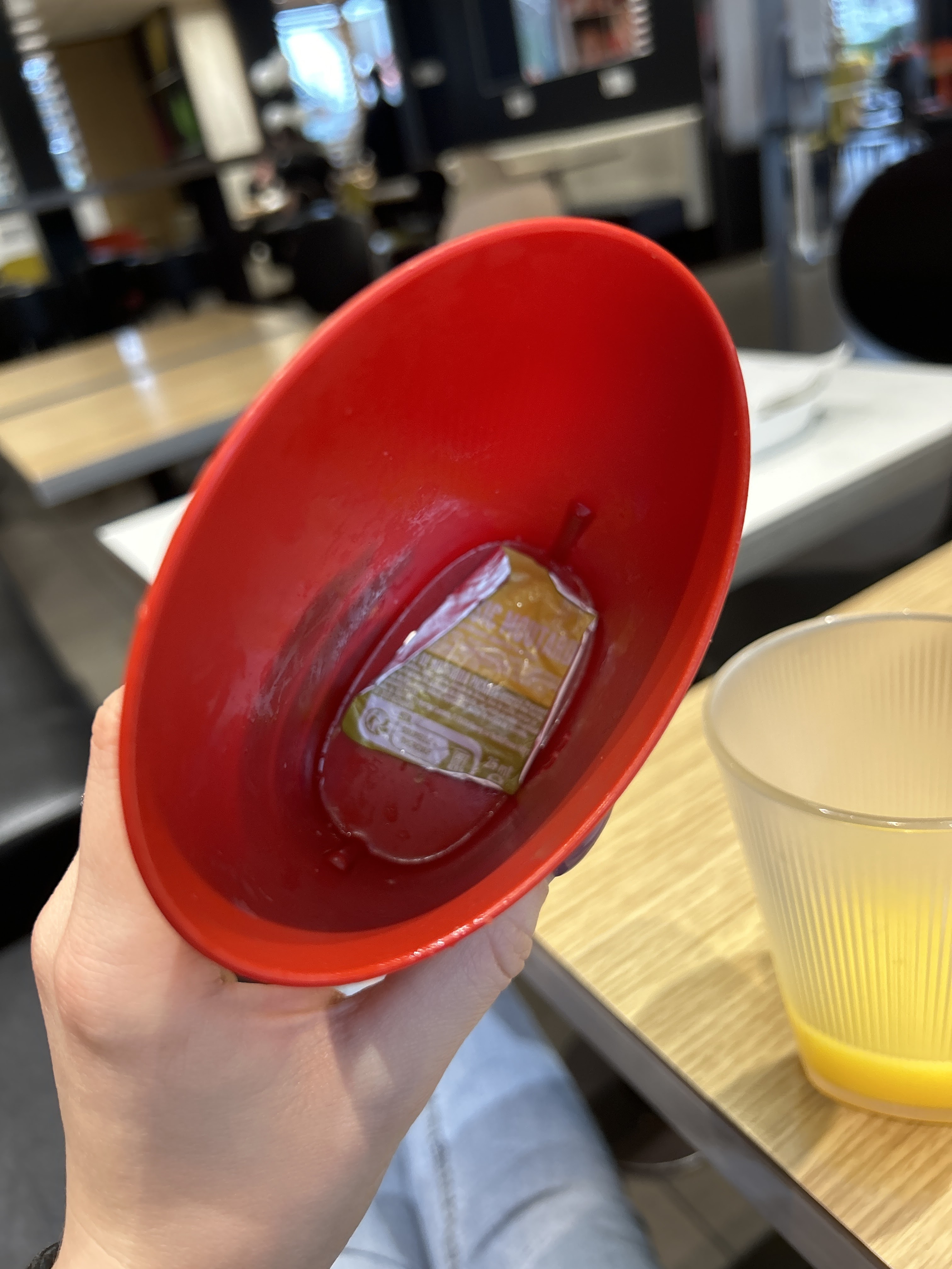 Cela fait plusieurs fois que je prends un easy drive dans ce restaurant. Pas de porte gobelets pour les boissons (enfin par pour une seule boisson) je ne comprends pas, à chaque fois j’explique que je ne peux pas conduire avec le gobelet à la main mais ça n’a pas l’air de déranger. Et aujourd’hui, le jeune homme n’étais pas très compréhensif, il a fallu insister. Du coup juste un porte gobelet.. je vous laisse imaginer le premier virage, les dégâts..obliger donc de manger sur le parking de king jouet juste à côté ..Alors je comprends que vous voulez faire des économies de jetables mais à ce compte là arrêter les drives!!!