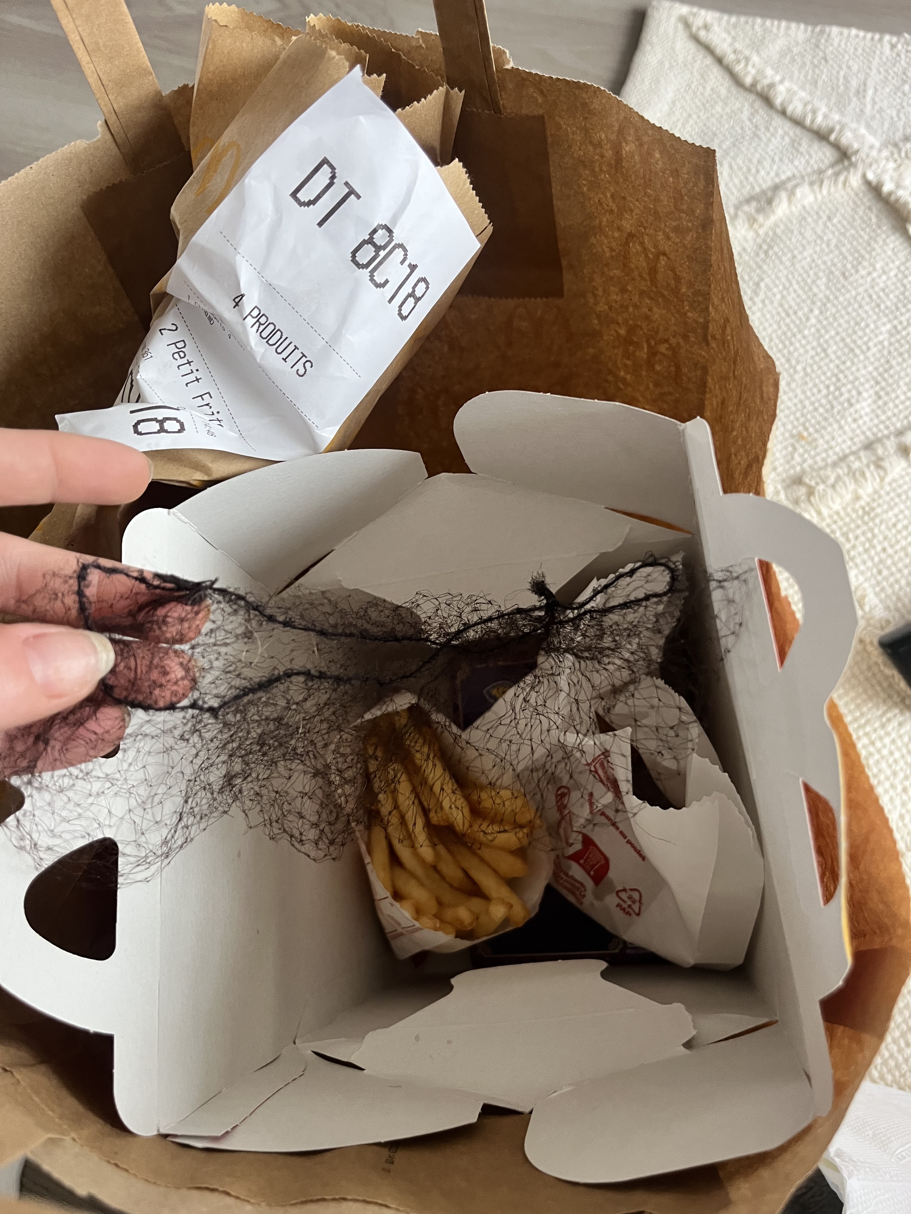 4 Menus commandés au drive, arrivé à la maison il manquait les frites. Numéro de téléphone ne fonctionne pas Lamentable