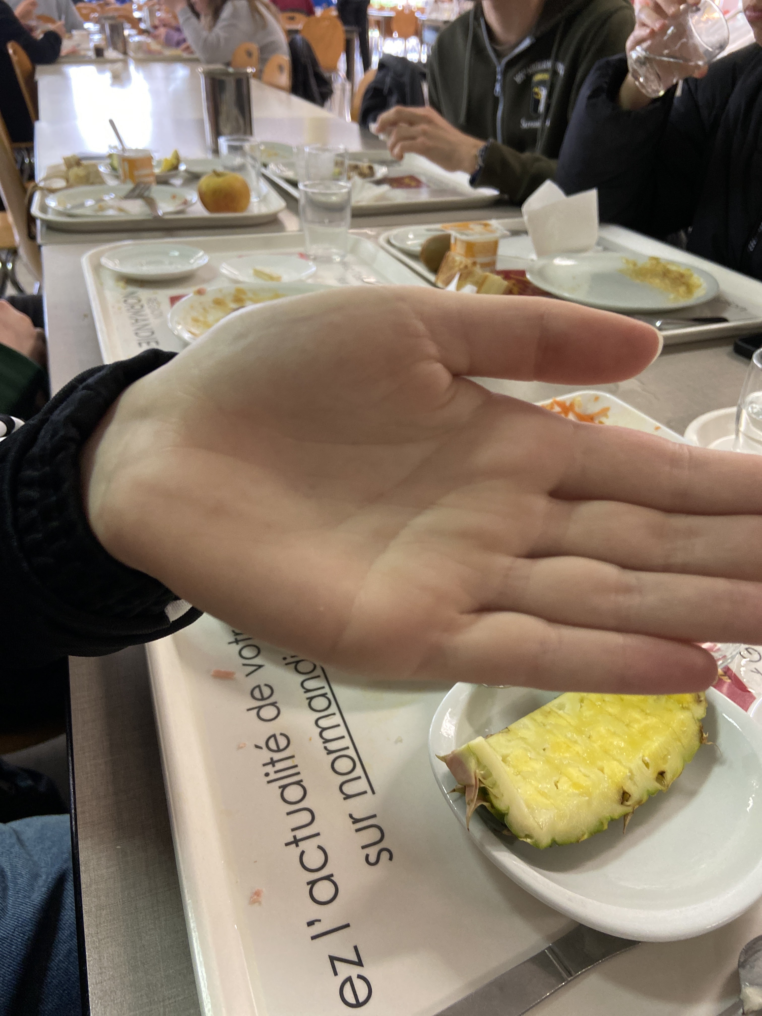 Petites erreurs dans la commandes, corrigées rapidement et gentiment. Repas servis bien chaud, très bon . Toilette un peu sales en revanche ..