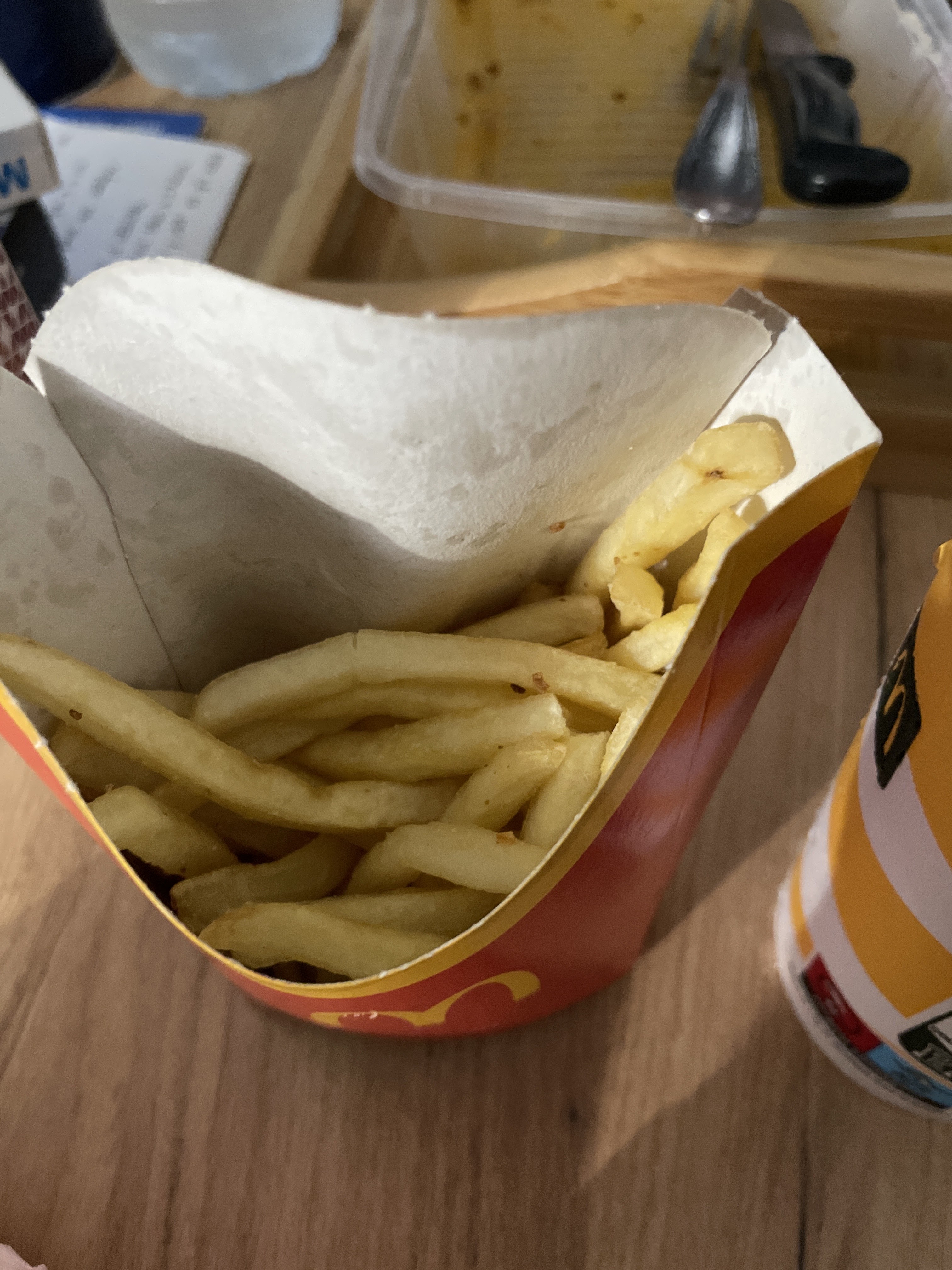 Le coca cola est chaud, les frittes sont froides. Il manque les livres et les desserts des happy meal. Heureusement qu on nous a mis sur le côté pour attendre notre commande !!!!! Le concurrent Burger King qui s installe à Chauny risque de vous mettre fortement à mal car je risque de ne plus m arrêter à viry au vu de ces ratés!