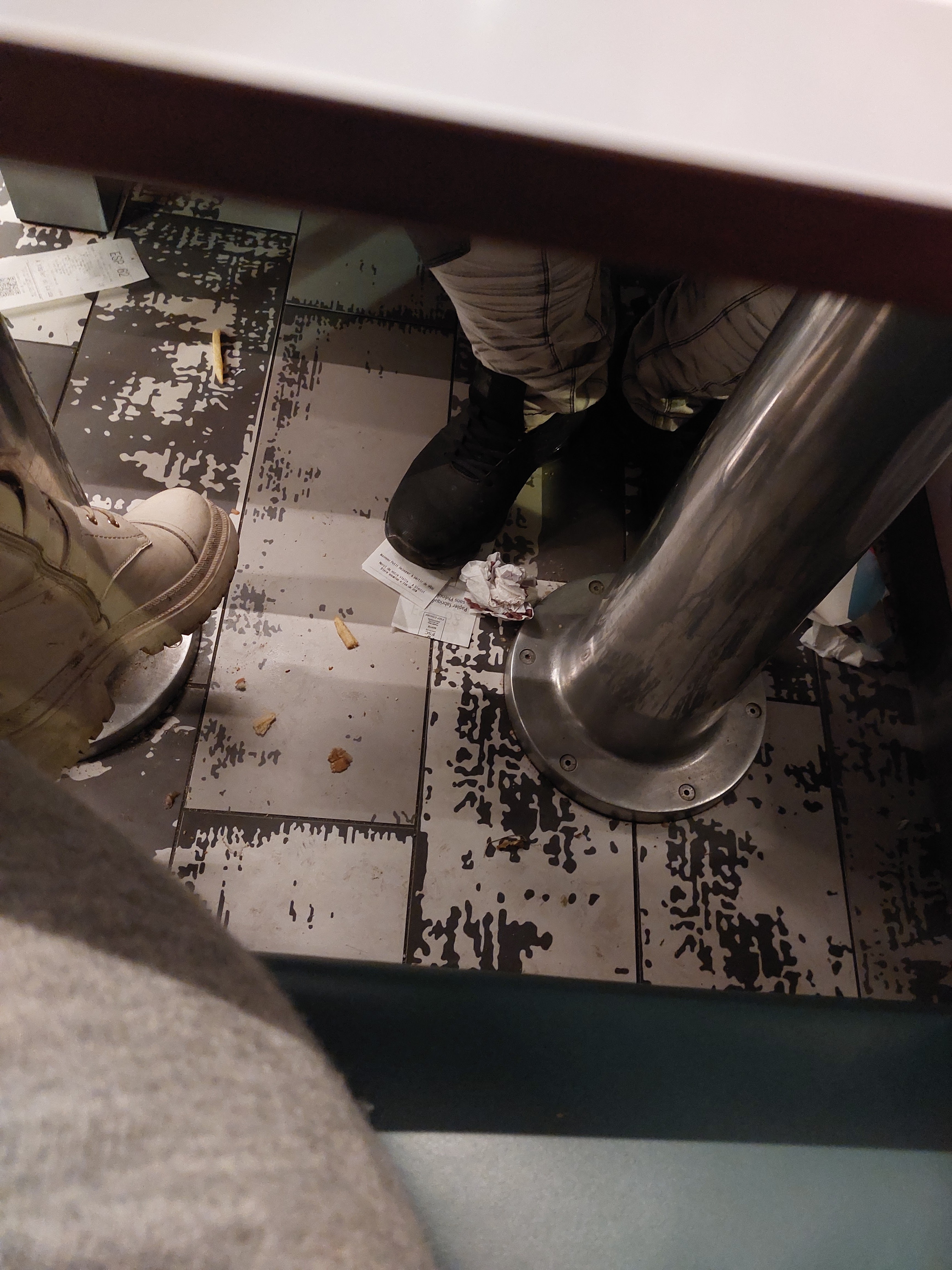Honteux table degeulase je demande pour qu'on me nettoie ma table on me donne le produit avec des serviettes en papier à moi de le faire des fruits périmer dans le happy meal des enfants des hamburger dure de saleté partout et en plus sa nettoie les table avec une lavette tomber au sol alors que c est sale