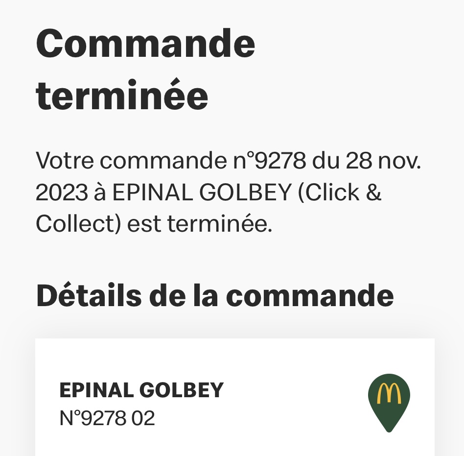 Ils sont fort là bas quand même, je vais à la caisse parce que la borne ne marche. Une dame prends ma commande et répète même après moi et tous ça pourquoi avoir une commande totalement différente 🤦🏾♂️.