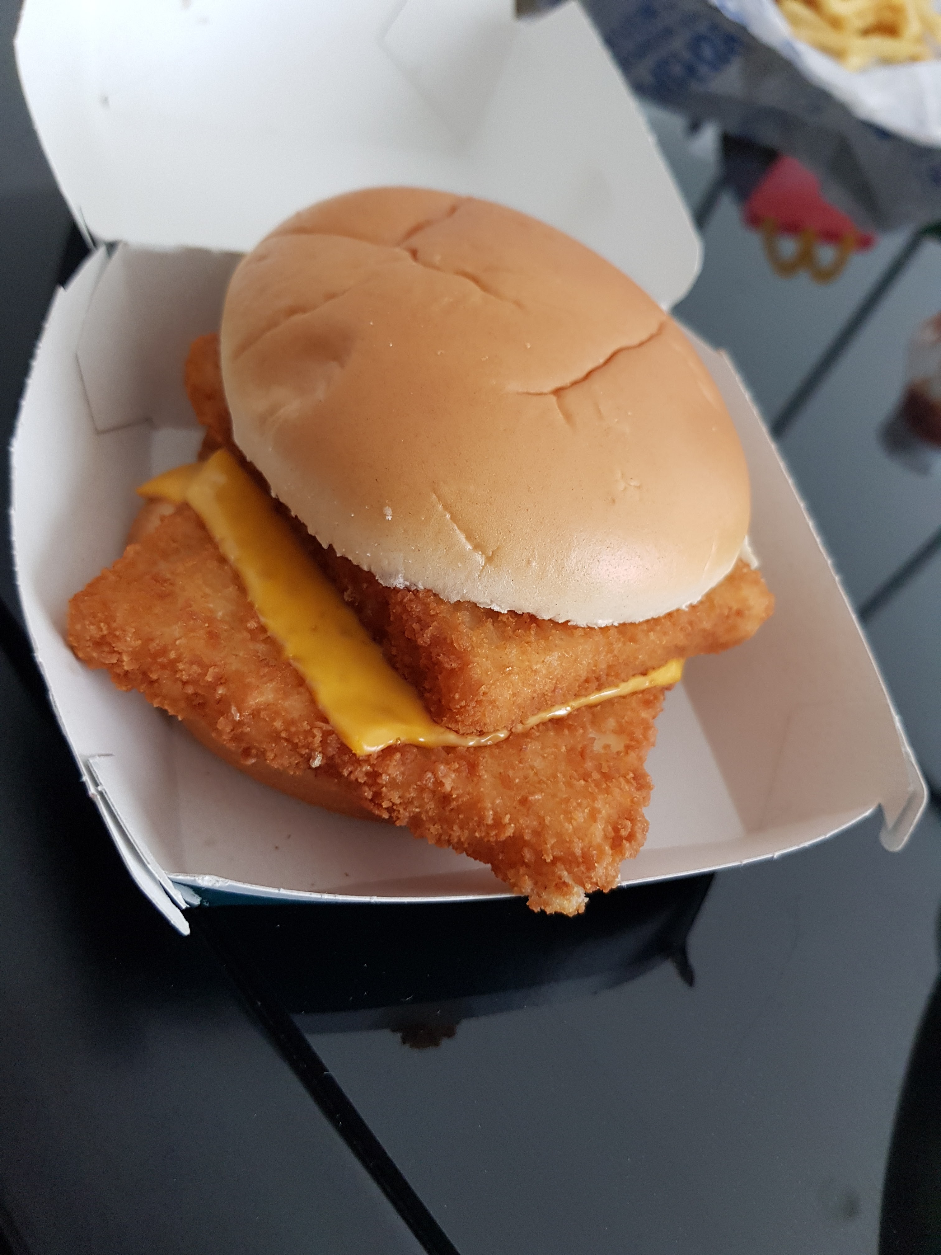 Sandwich monter à la rache ,deux bout de poisson en vrac une guoutte de sauce Je pense que le personnelle n'aime vraiment pas sont job Je vais tout de meme remonter mon sandwich moi meme Merci Mac'Do !
