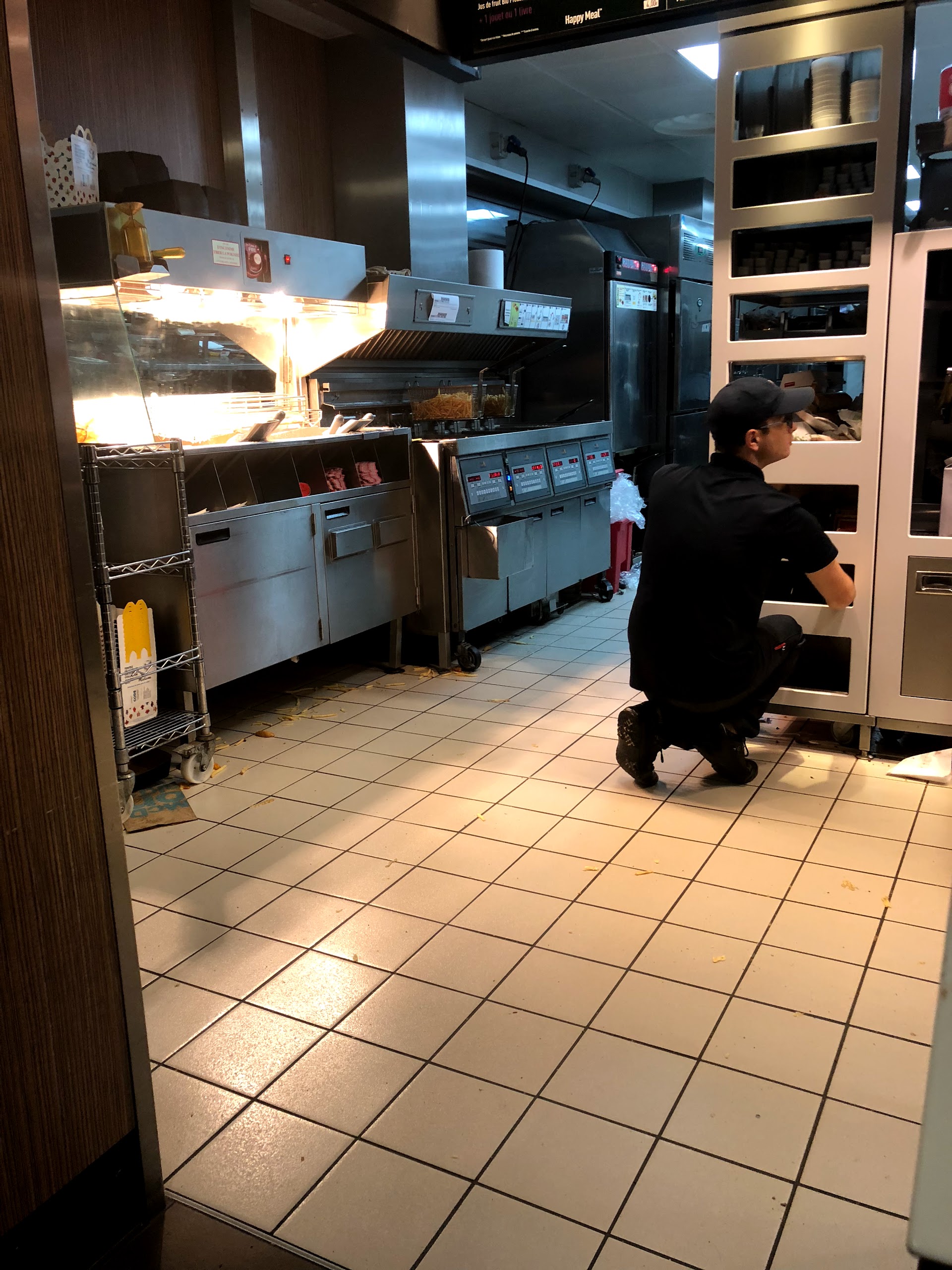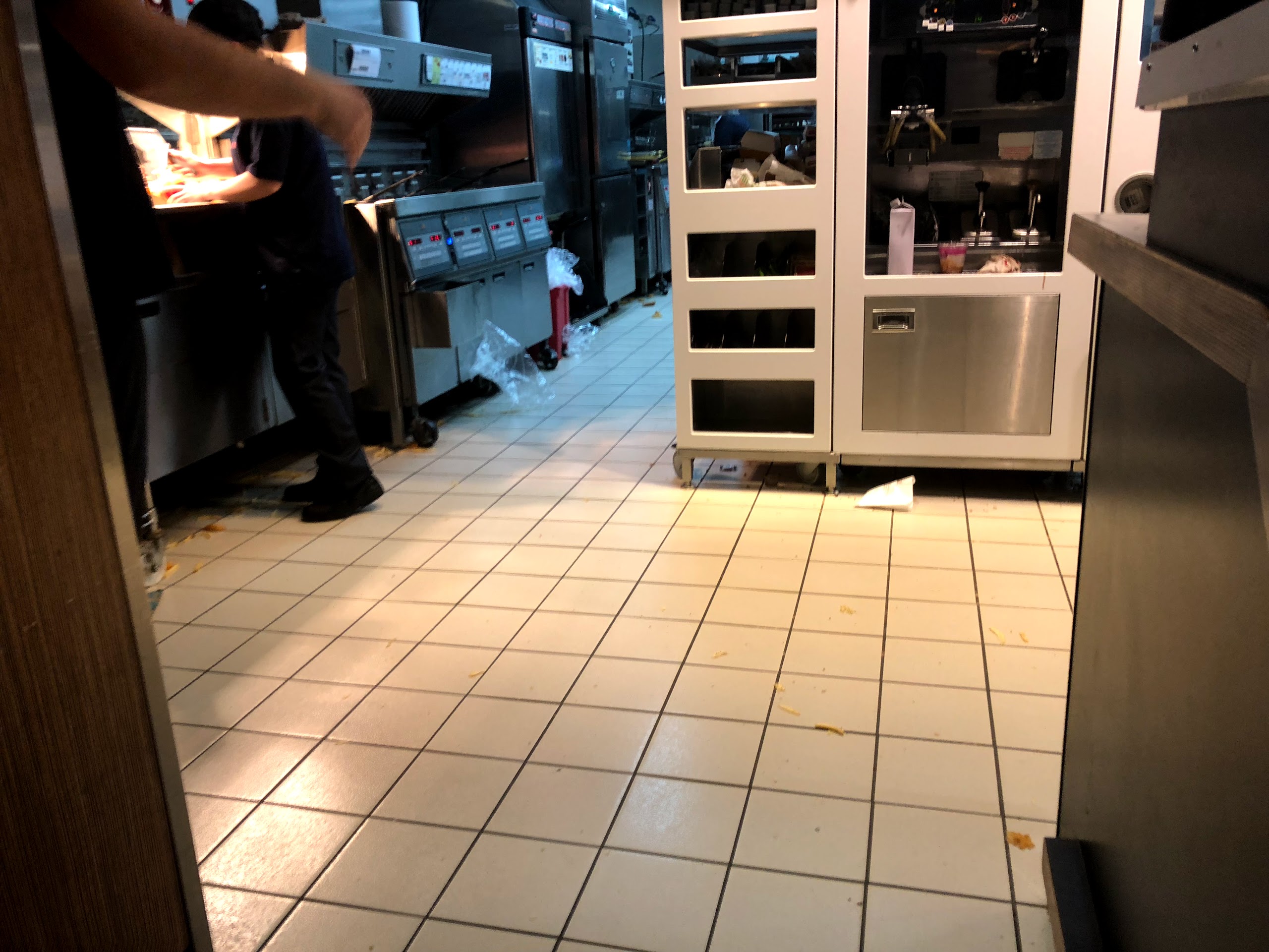 Il est 20h40, très peu de clients, quasi vide, mais bien sûr frites et sandwiches tièdes, endroit pas très propres, des résidus ici et là. On se pose des questions.....