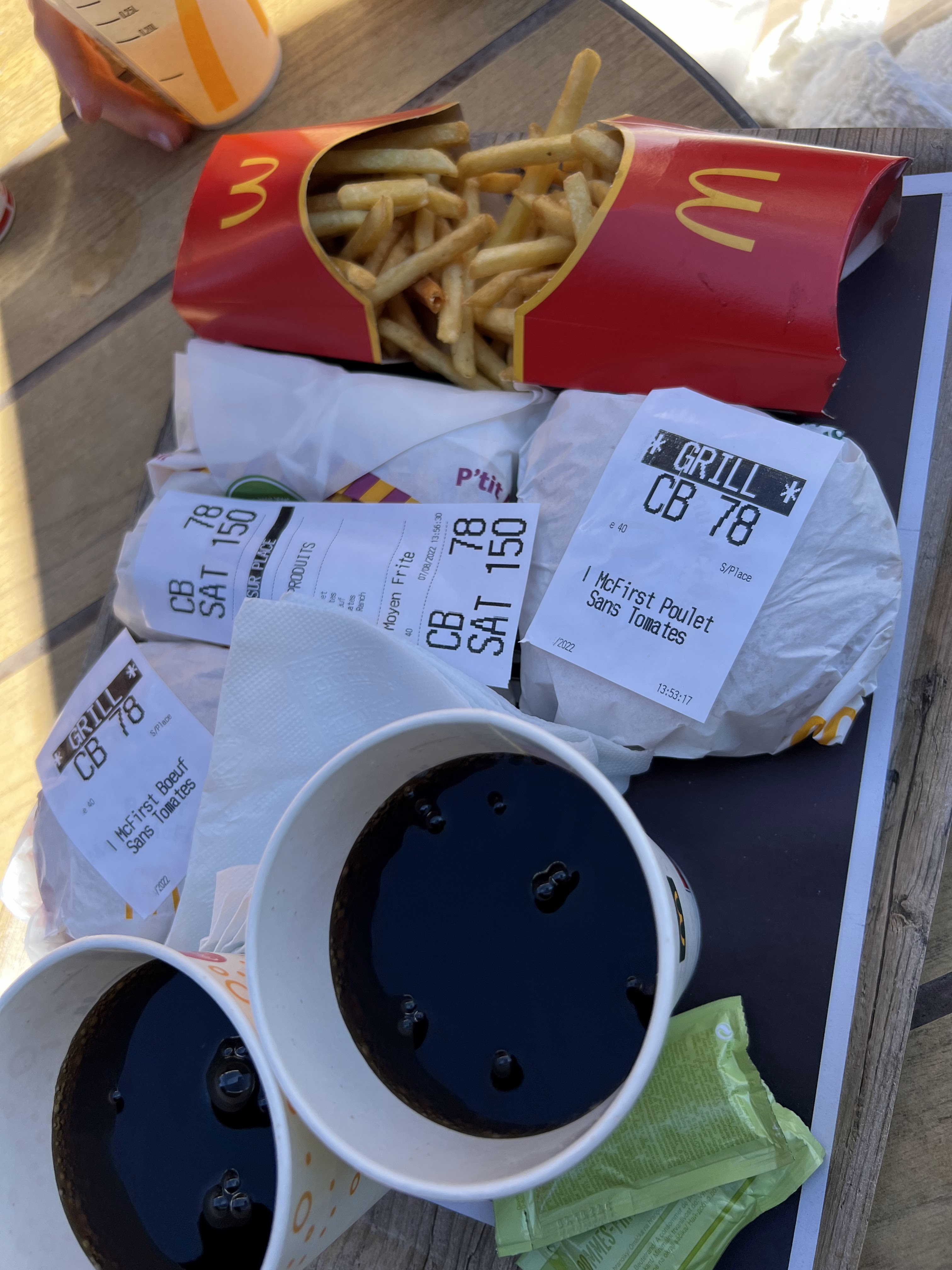 1 : Un royal deluxe immonde, sans la sauce moutarde à l’intérieur + frites froides. 2 : payer plus de 4€ un McFlurry, dans lequel on vous met une demi dose de chocolat, et on vous rechigne à en mettre un peu plus en vous disant « si vous voulez une dose en plus, c’est 20 centimes en plus », honteux. Mieux servie chez Burger King. 👍🏻