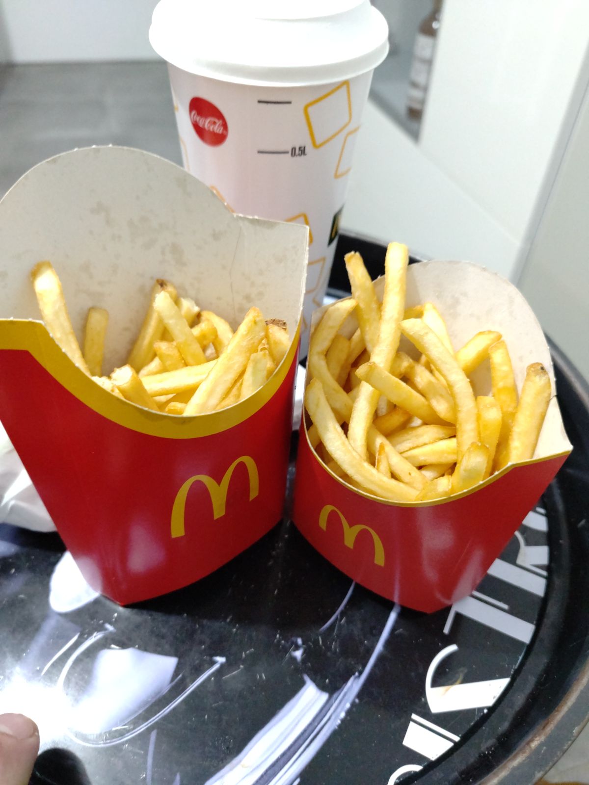 Juste pris une grande potatoes pour accompagner mes filles et encore un fois j'en ai moins que ma fille dans la moyenne (ça fait 3/4 fois en plusieurs mois). Sans compter les oublis et régulièrement le manque de certains produits.