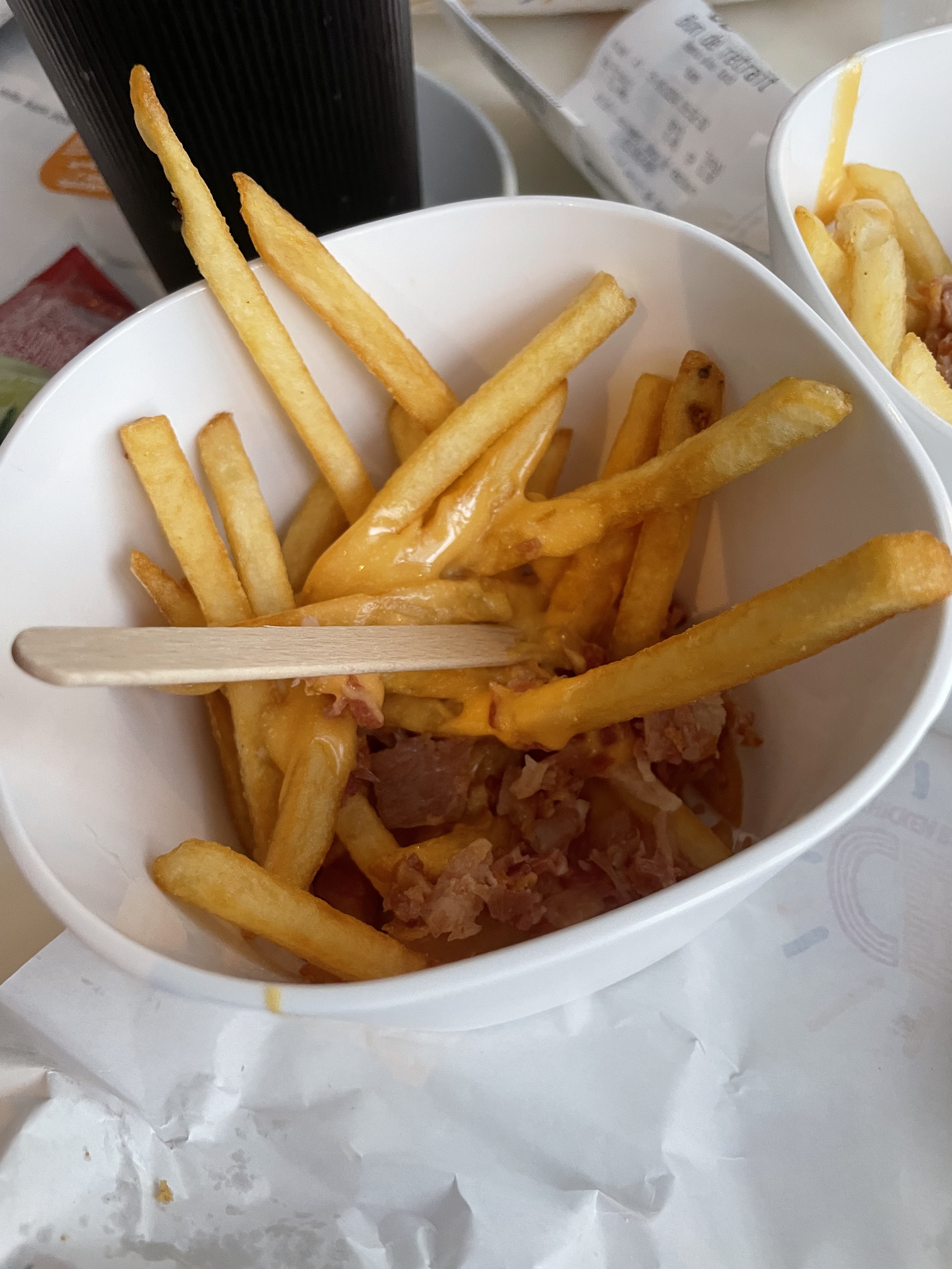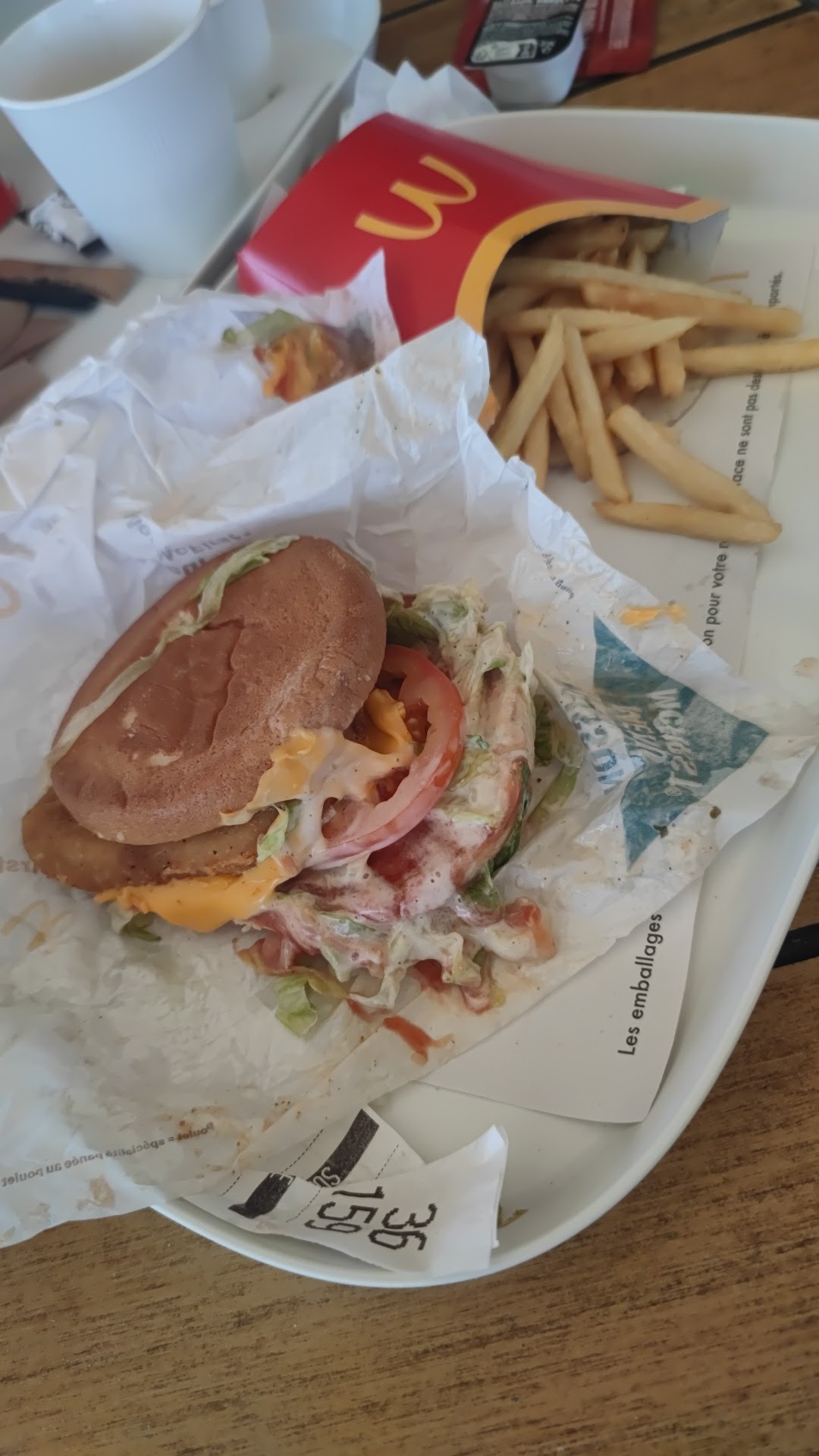 1€50 de + pour des frites mc flavour mais encore moins de quantité qu’une moyenne frites ! Manque la sauce pour la salade, manque les tomates dans le wrap, manque les couverts… C’est de pire en pire!