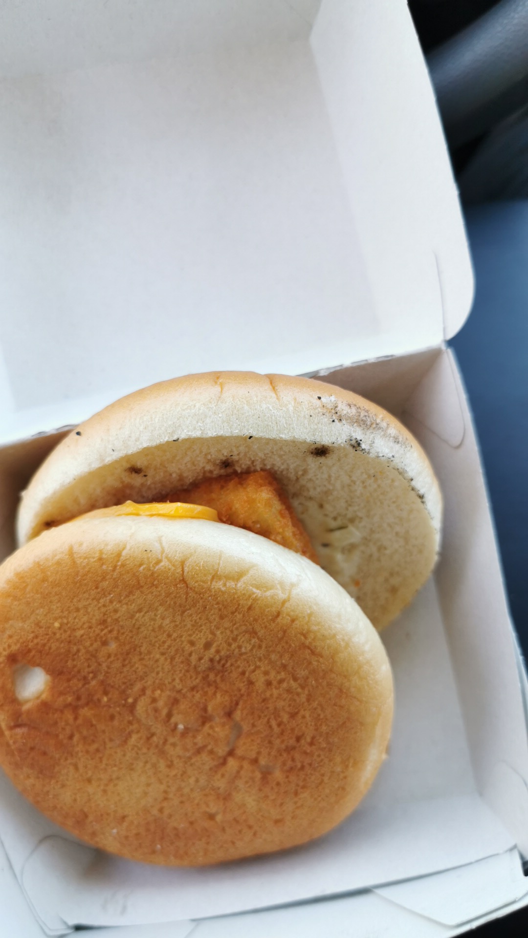 Burgers jetés dans le sac dont un ouvert qui c est retrouvé au fond du sac. Des burger d un taille ridicule. Le menu enfant est plus copieux que le repas adulte