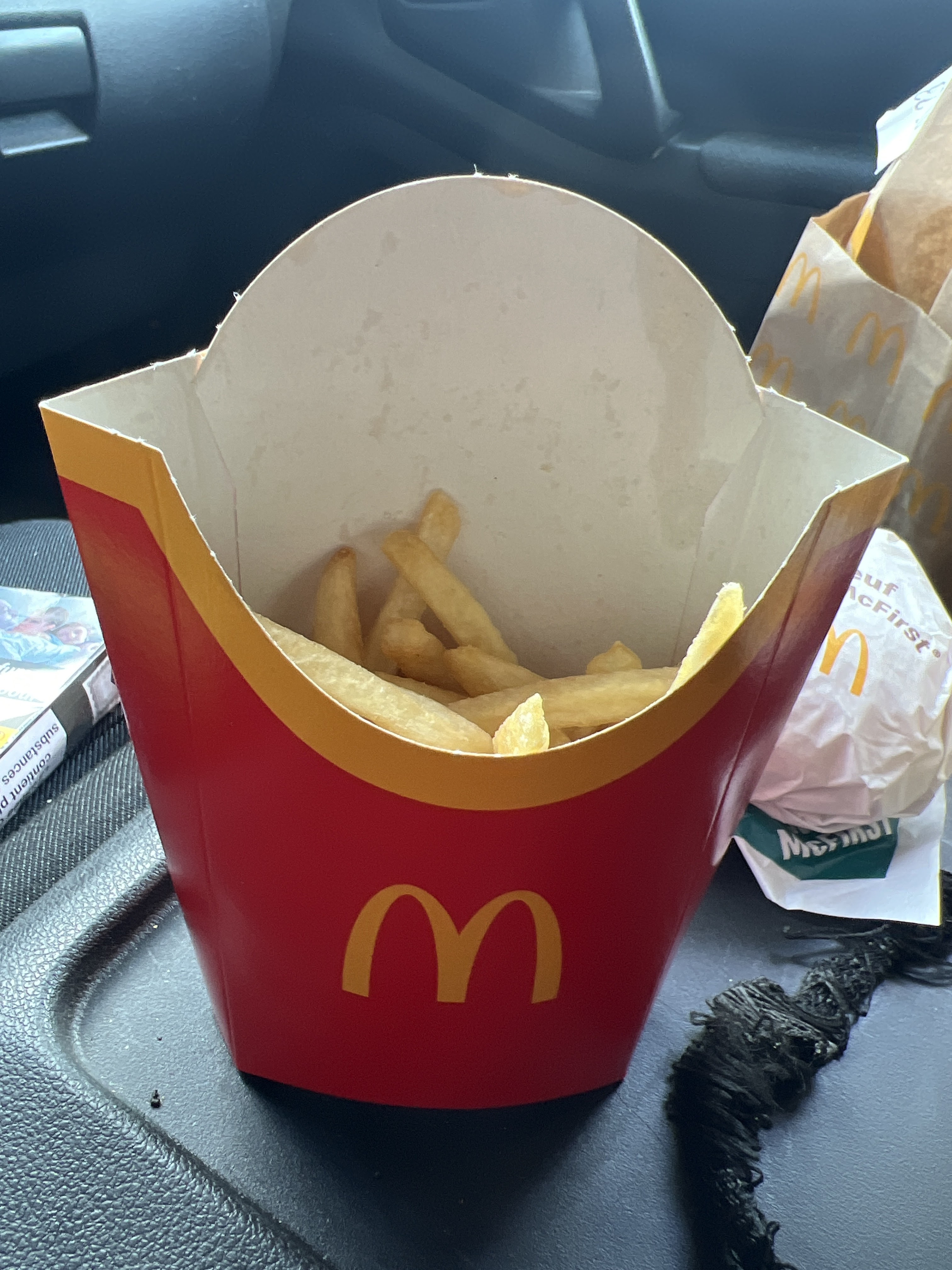 Drive honteux… 23 minutes pour 2 menu Mc smart !!! Frittes froides , Burger froid…. BRAVO